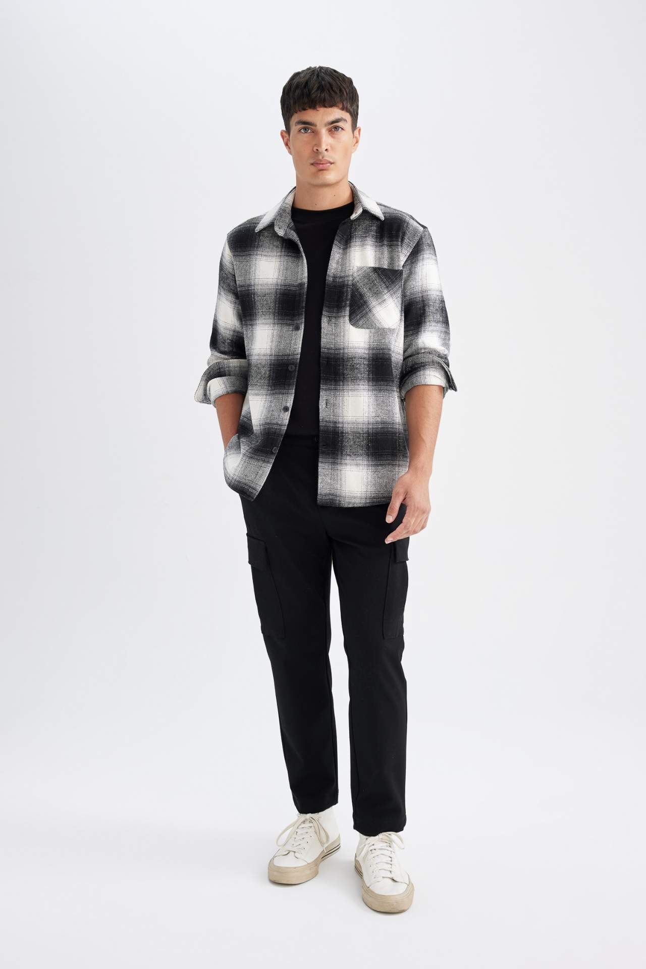 DeFacto Regular Fit Polo Yaka Kareli Flanel Uzun Kollu Gömlek D3498AX24WNBK81