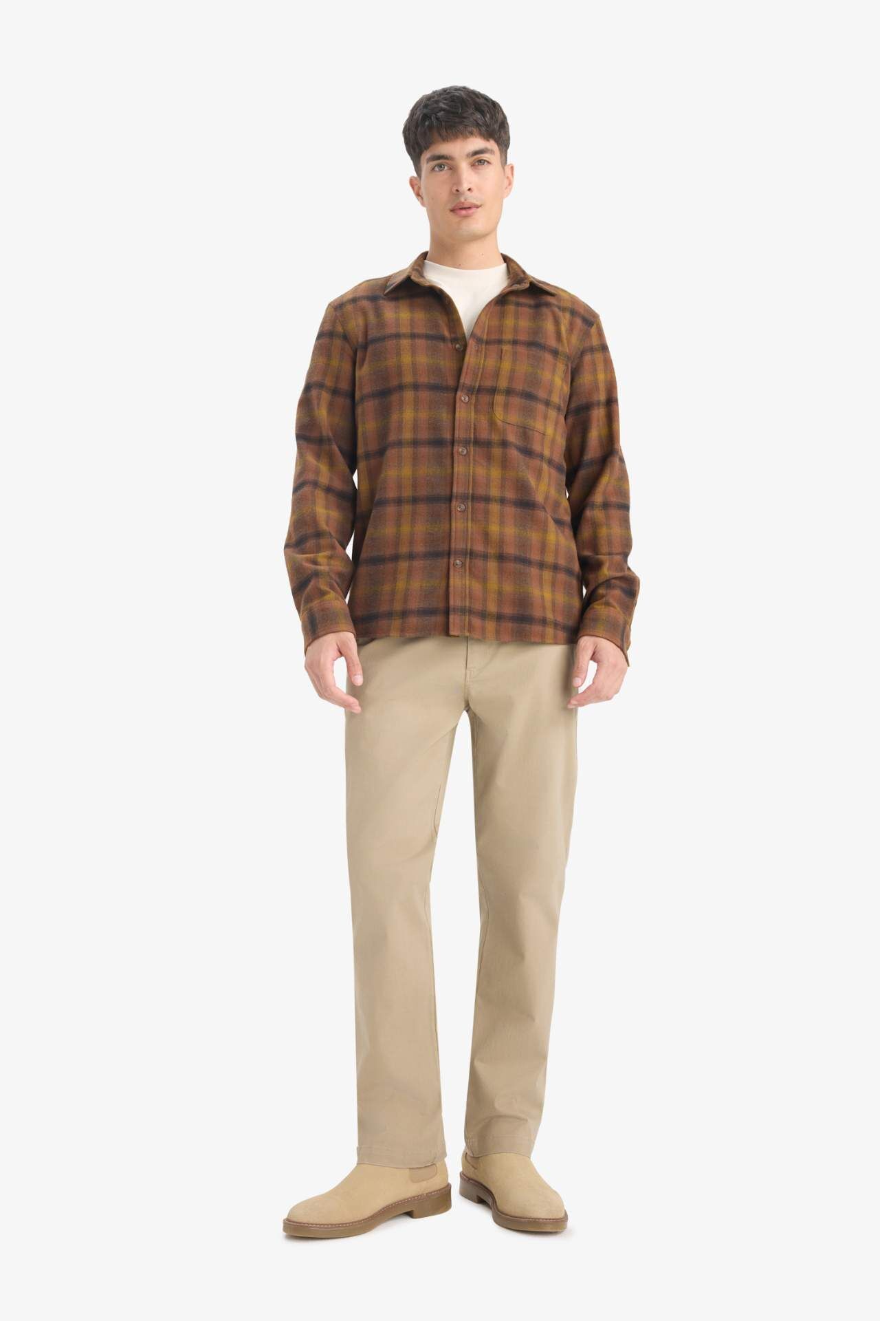Regular Fit Polo Yaka Kareli Flanel Uzun Kollu Gömlek