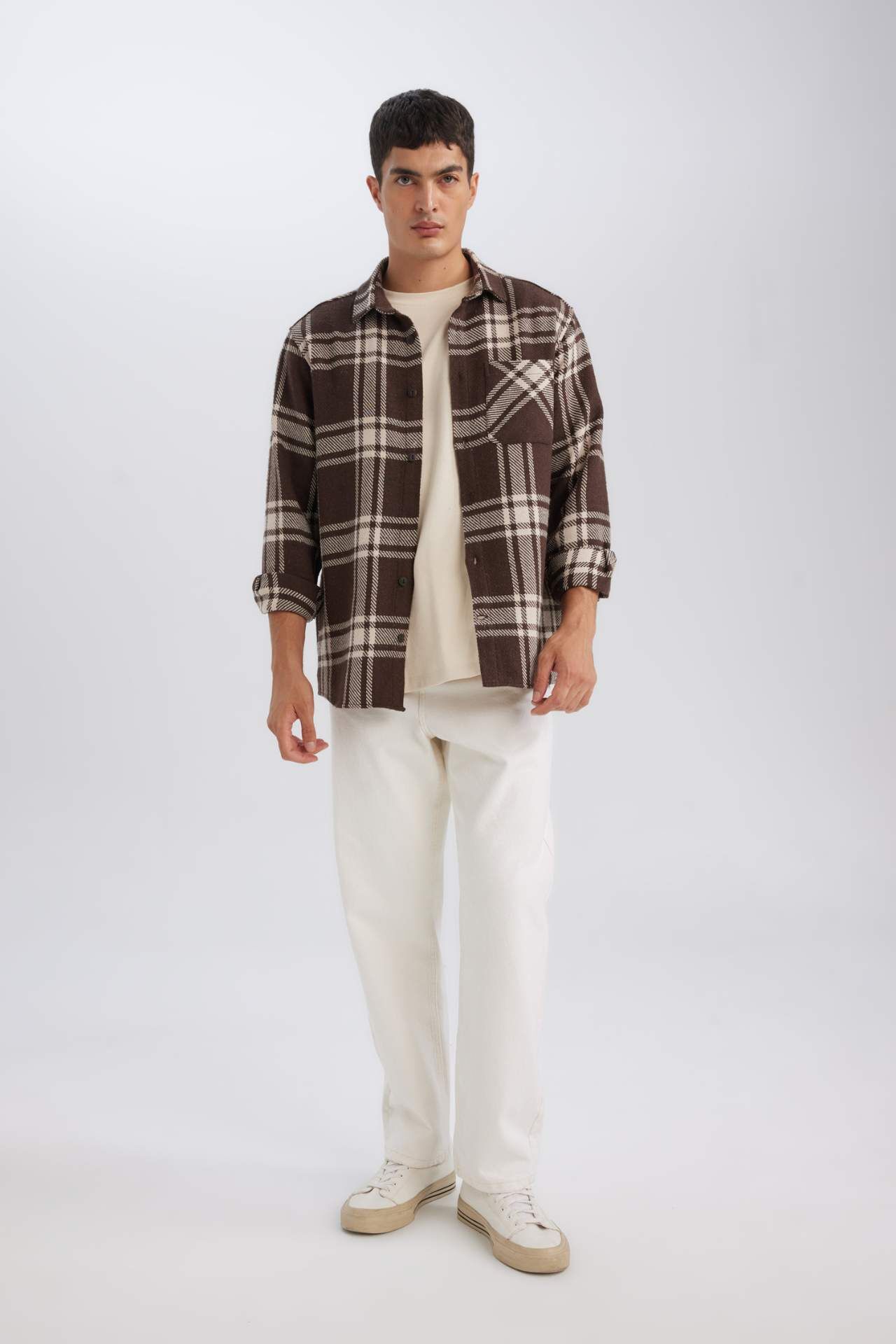 DeFacto Regular Fit Polo Yaka Kareli Uzun Kollu Gömlek D4132AX24WNBN192