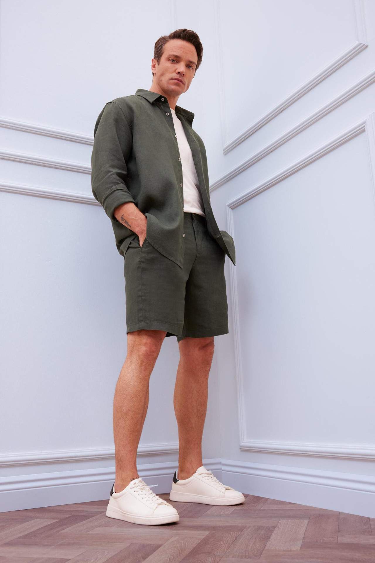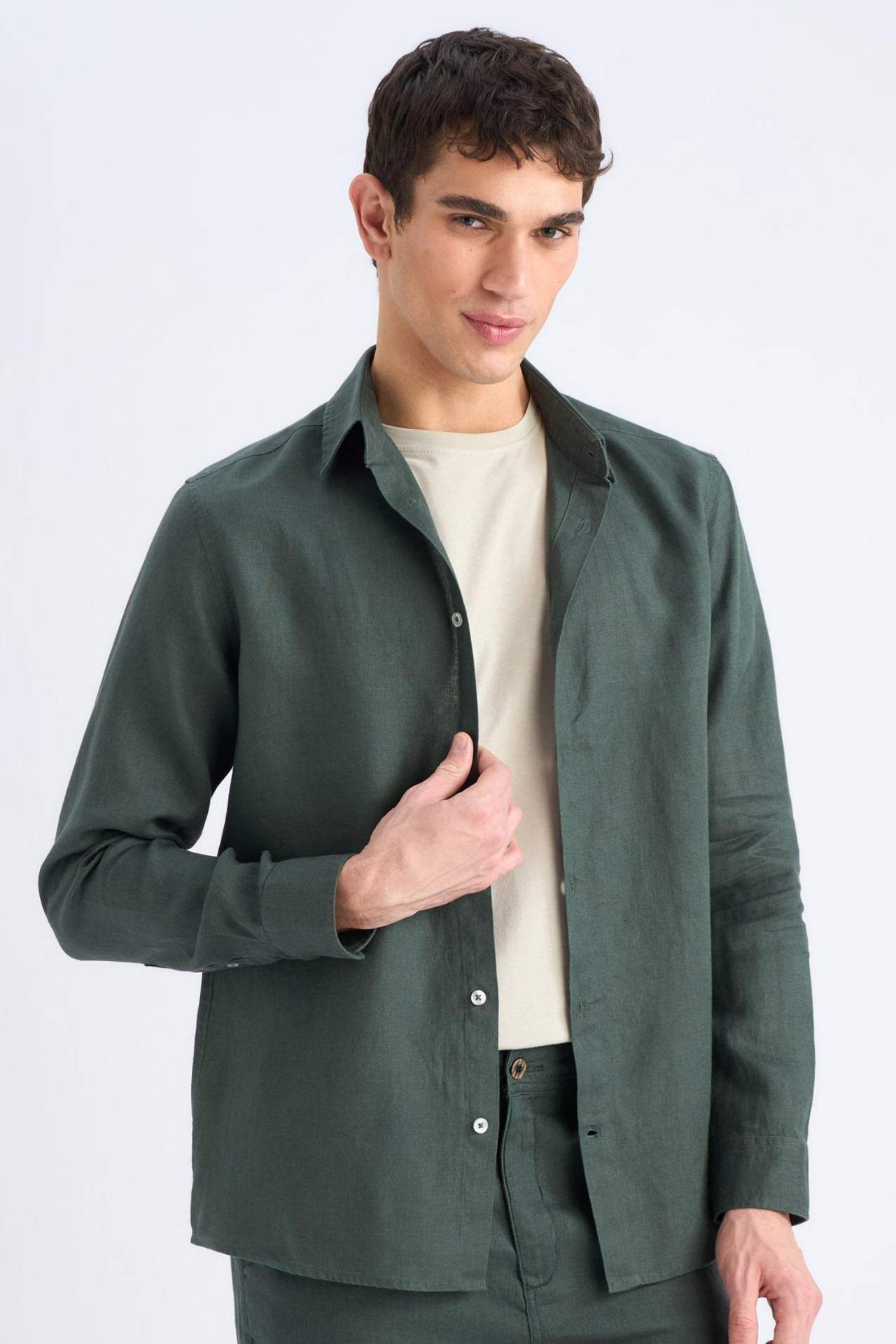 DeFacto Regular Fit Polo Yaka Keten Yazlık Uzun Kollu Gömlek D9925AX25SPKH498