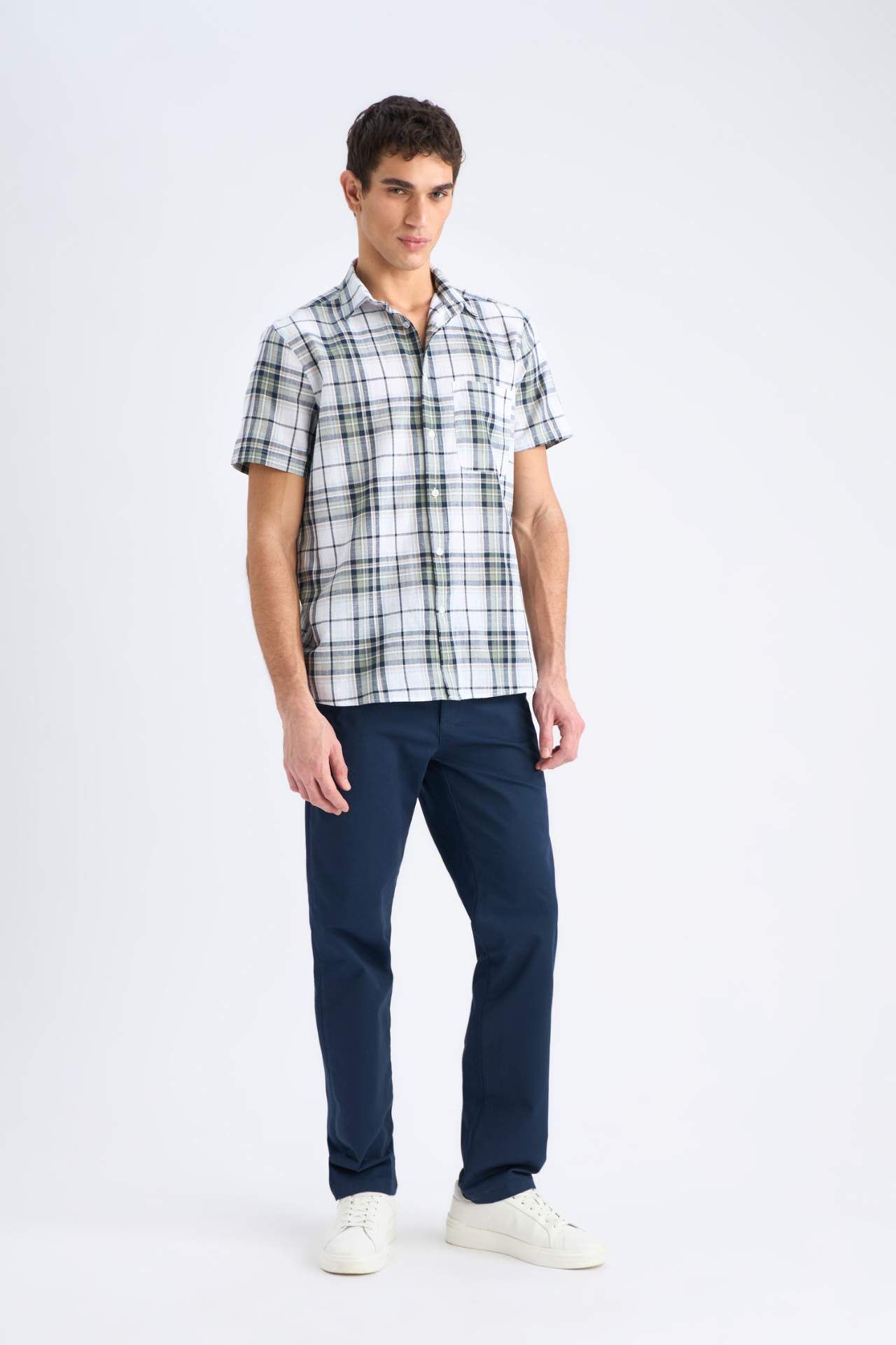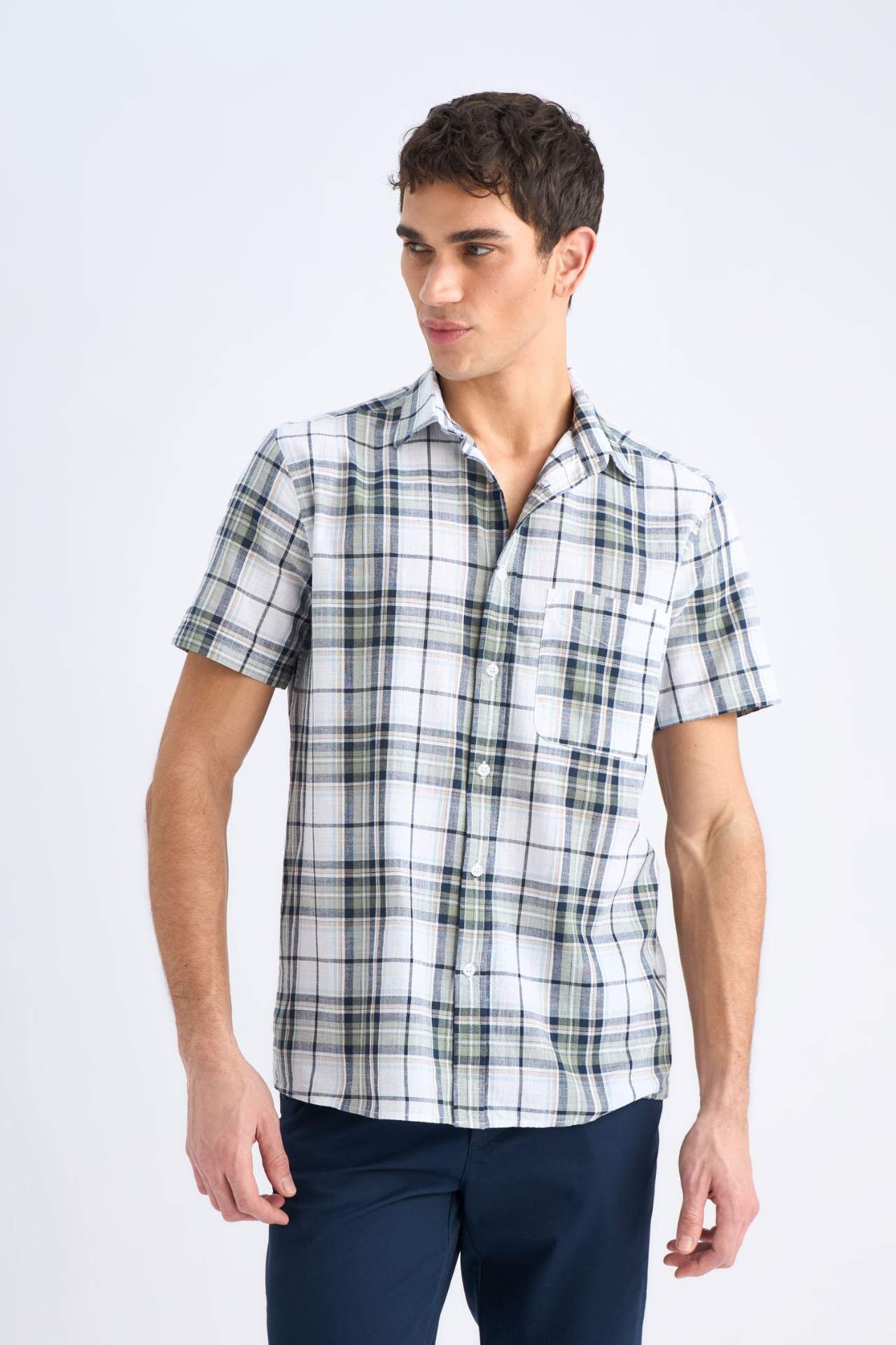 Regular Fit Polo Yaka Kareli Kısa Kollu Gömlek, şık kareli deseni ve rahat kesimiyle hem günlük hem de özel günlerde şıklığınızı tamamlar. Polo yaka tasarımı, klasik bir görünüm sunarken, kısa kollu yapısı yaz aylarında rahat kullanım sağlar. Hem rahat hem de şık bir tercih. Pamuk 100%,Pamuk 100%,Pamuk 100%,Pamuk 100%,Pamuk 100%,Pamuk 100% Manken Bedeni: Göğüs: 96 Boy: 1,89 Basen: 97 Bel: 77