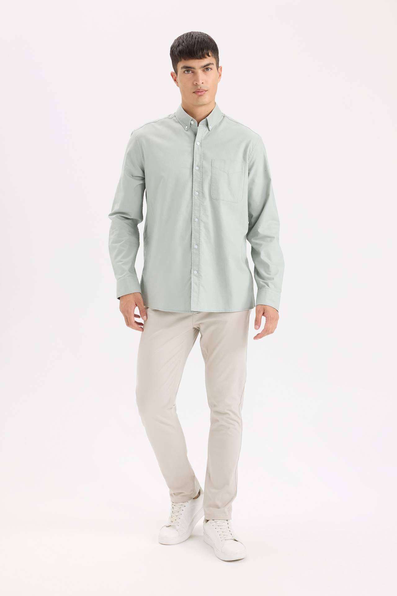 DeFacto Regular Fit Polo Yaka Oxford Basic Düz Uzun Kollu Gömlek A8028AX25SPGN1128