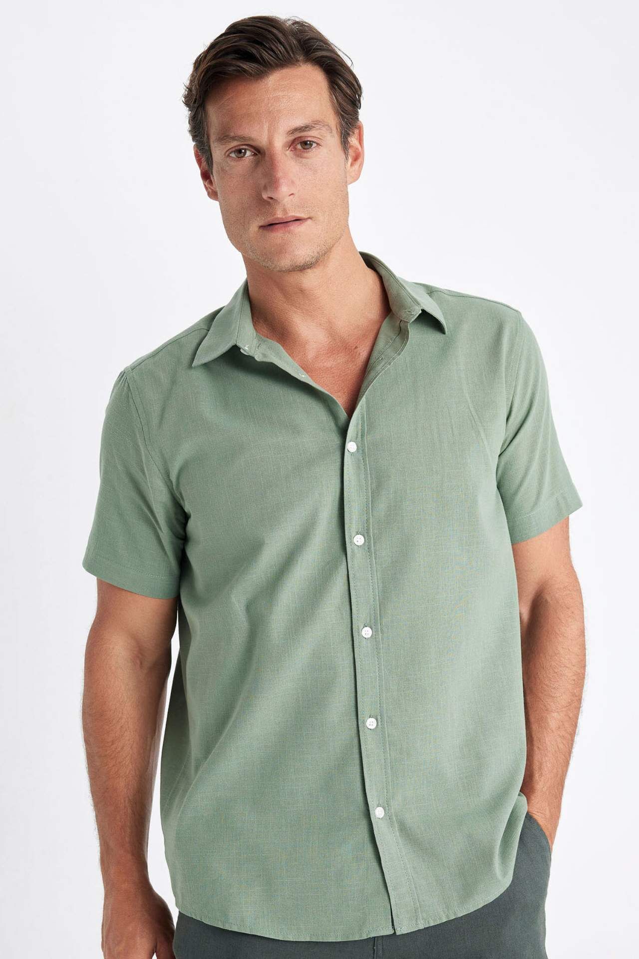 DeFactoFit Regular Fit Polo Yaka Pamuklu Kısa Kollu Gömlek D1057AX24SMKH450