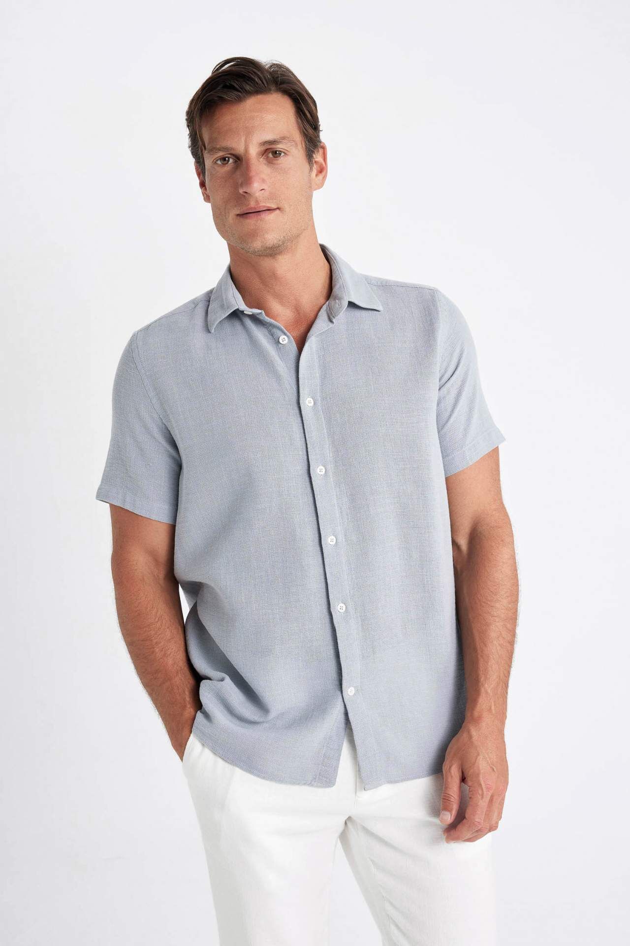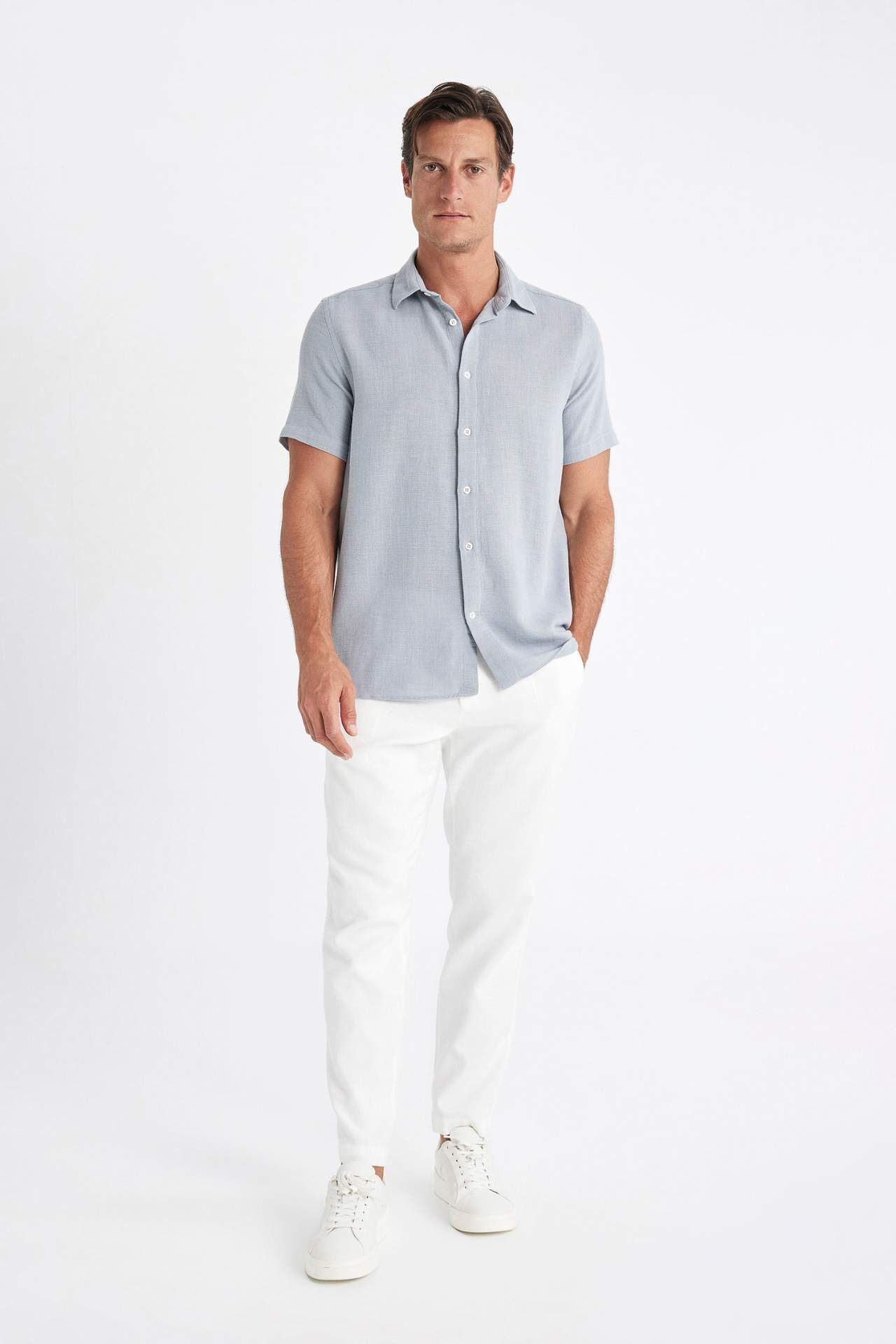 DeFactoFit Regular Fit Polo Yaka Pamuklu Kısa Kollu Gömlek D2924AX24SMGR524