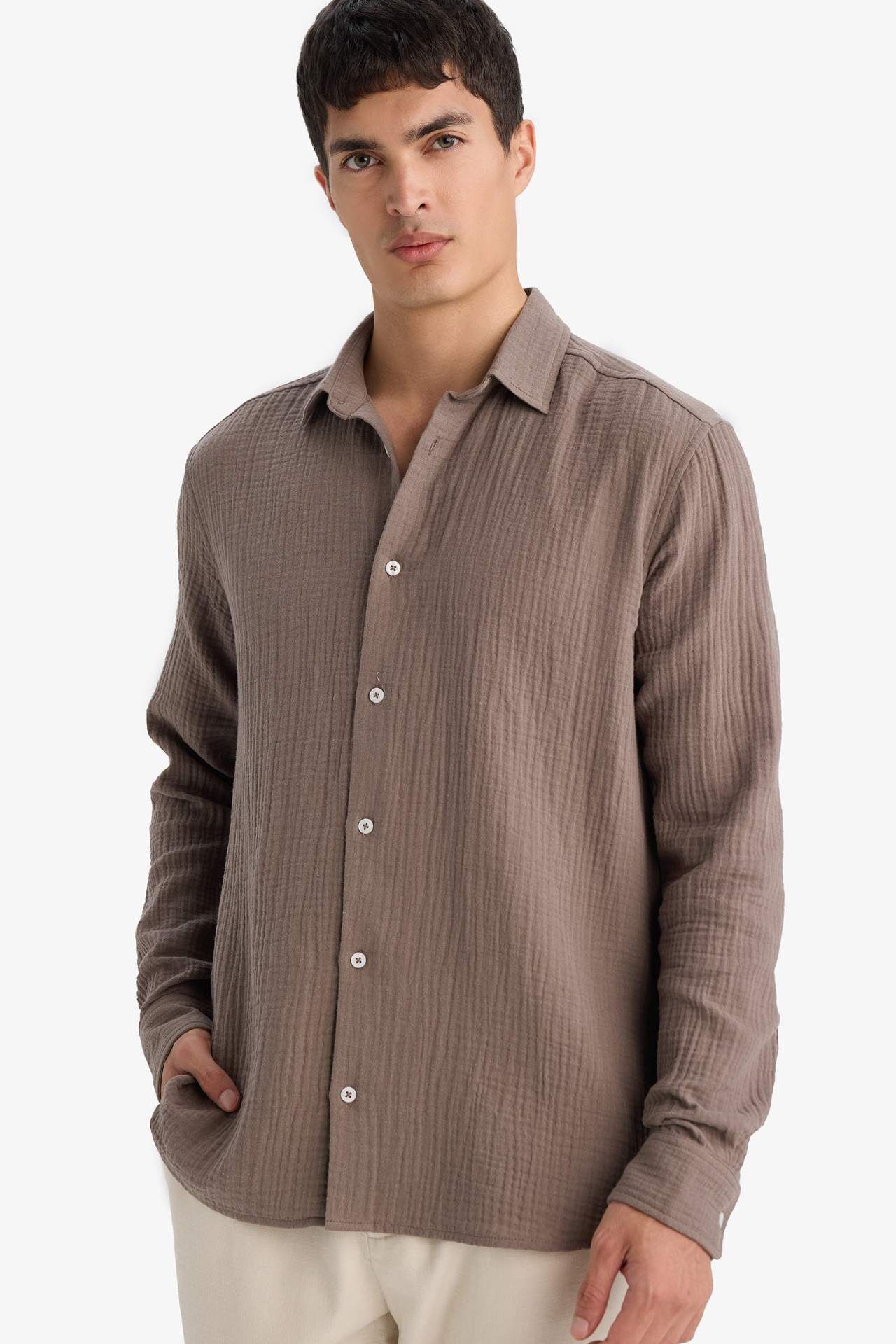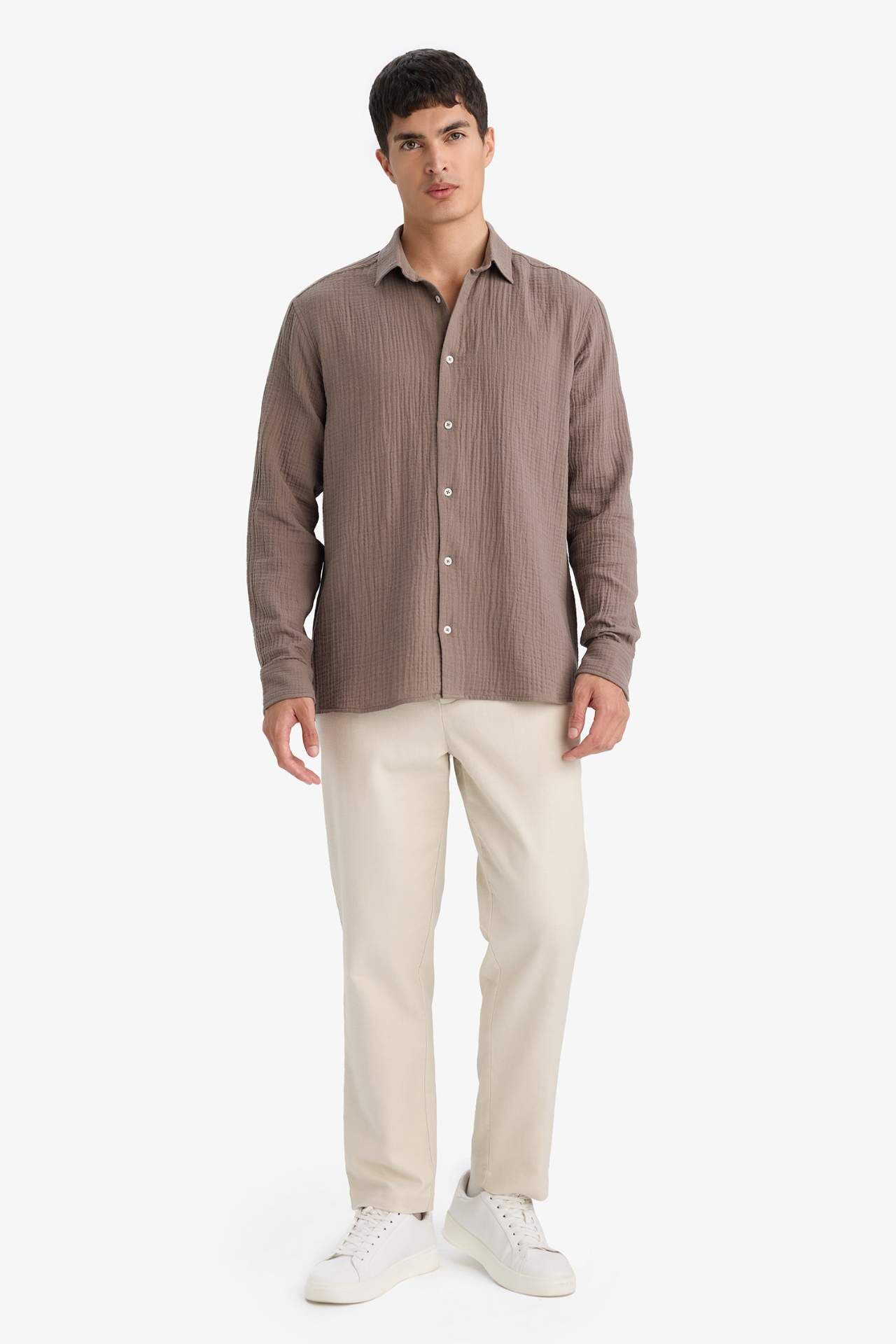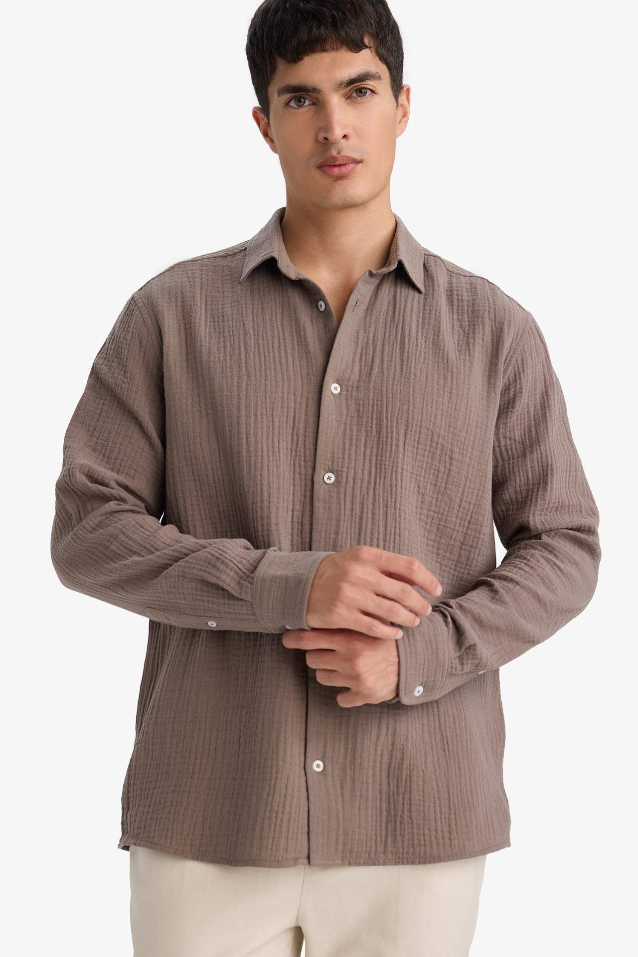 Regular Fit Polo Yaka Pamuklu Uzun Kollu Gömlek