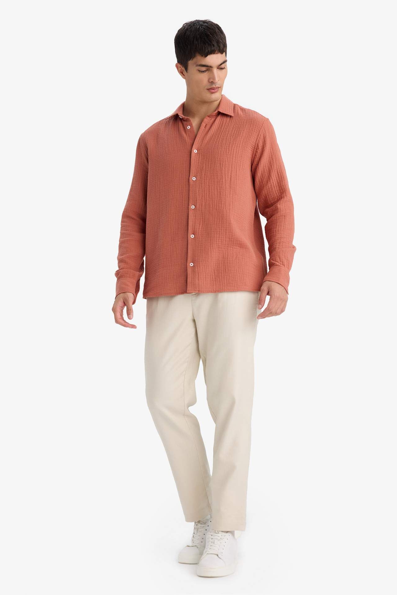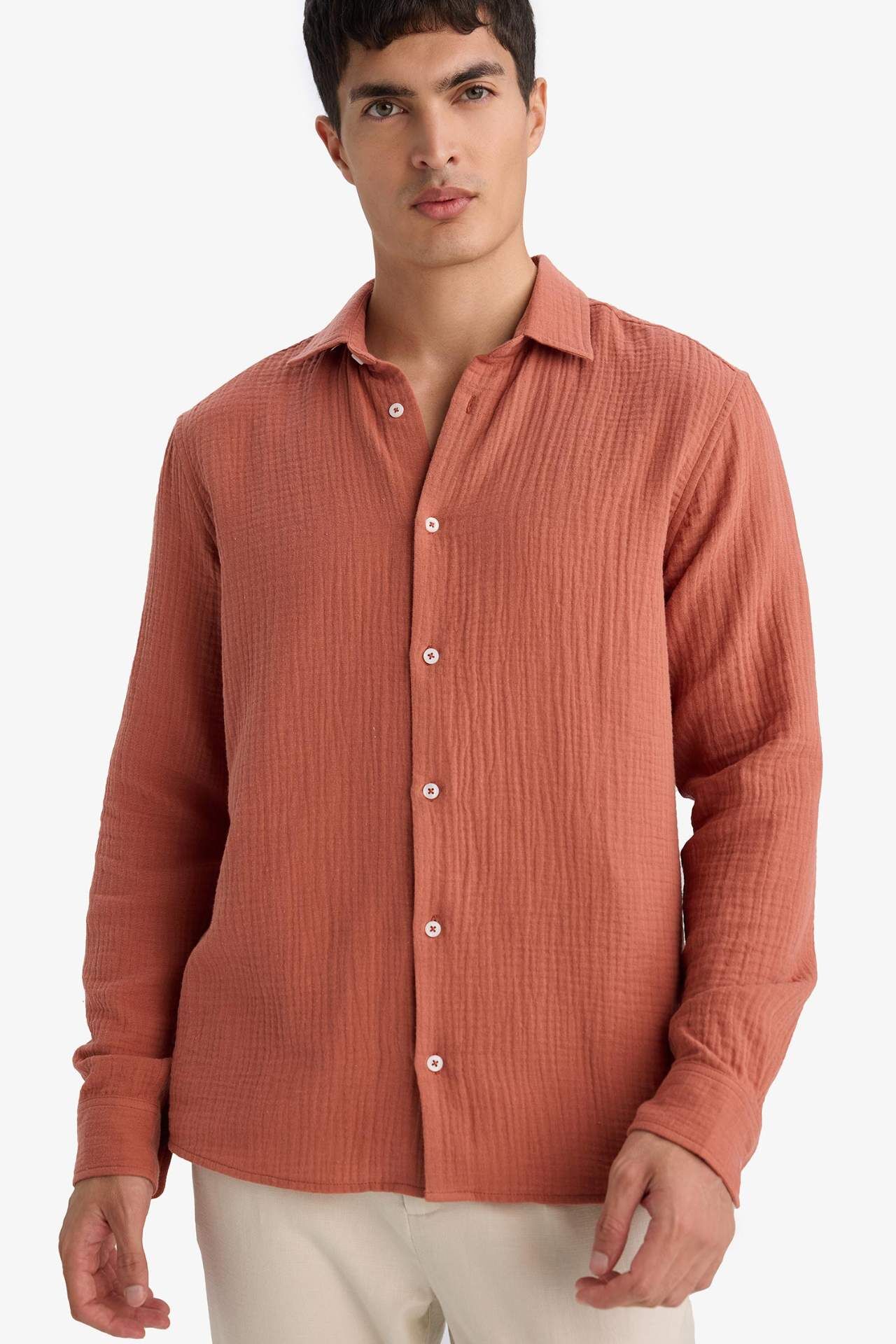 DeFacto Regular Fıt Polo Yaka Pamuklu Uzun Kollu Gömlek