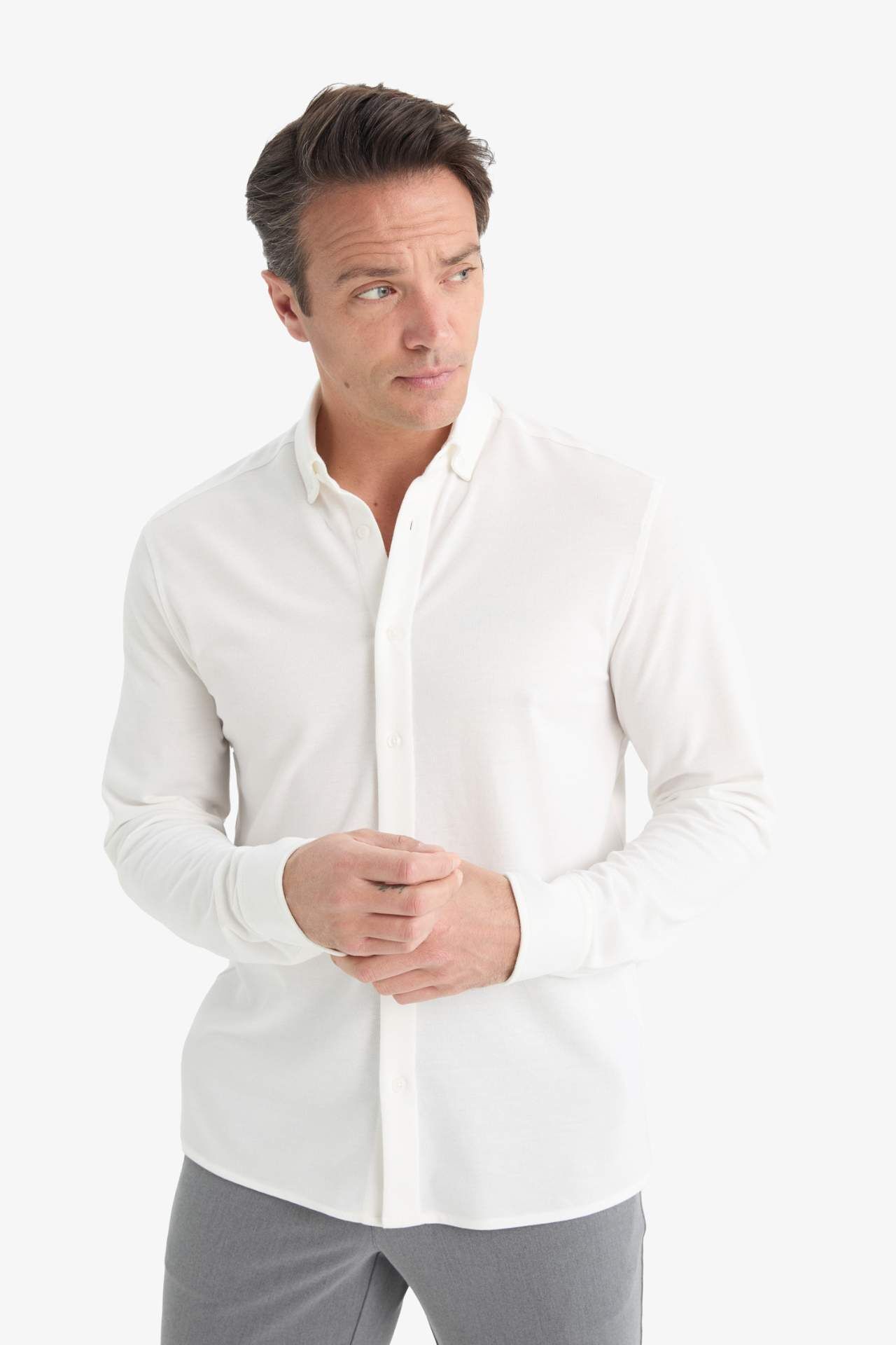 Regular Fit Polo Yaka Penye Uzun Kollu Gömlek E8067AX25AUER105