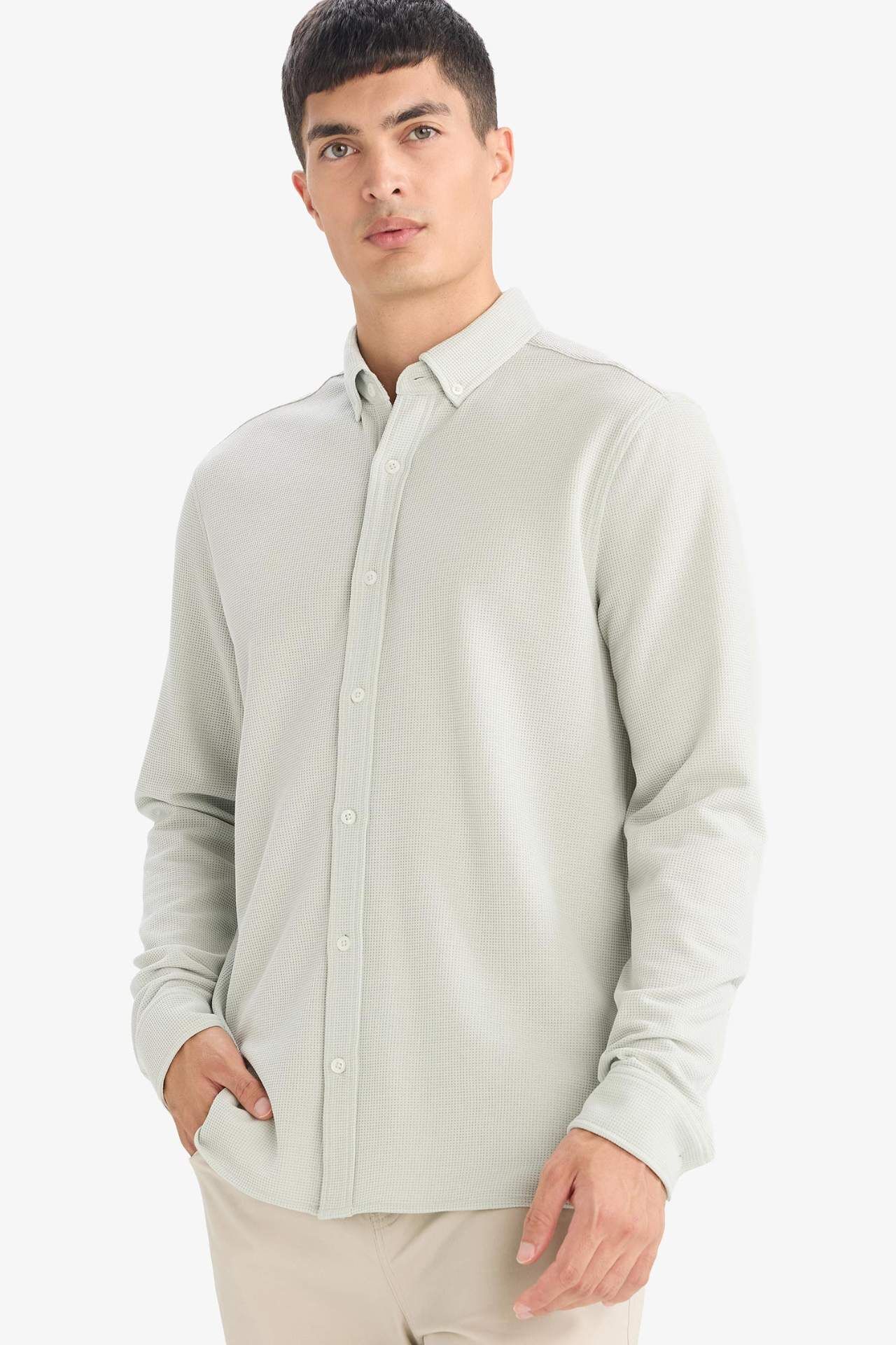 Regular Fıt Polo Yaka Penye Uzun Kollu Gömlek