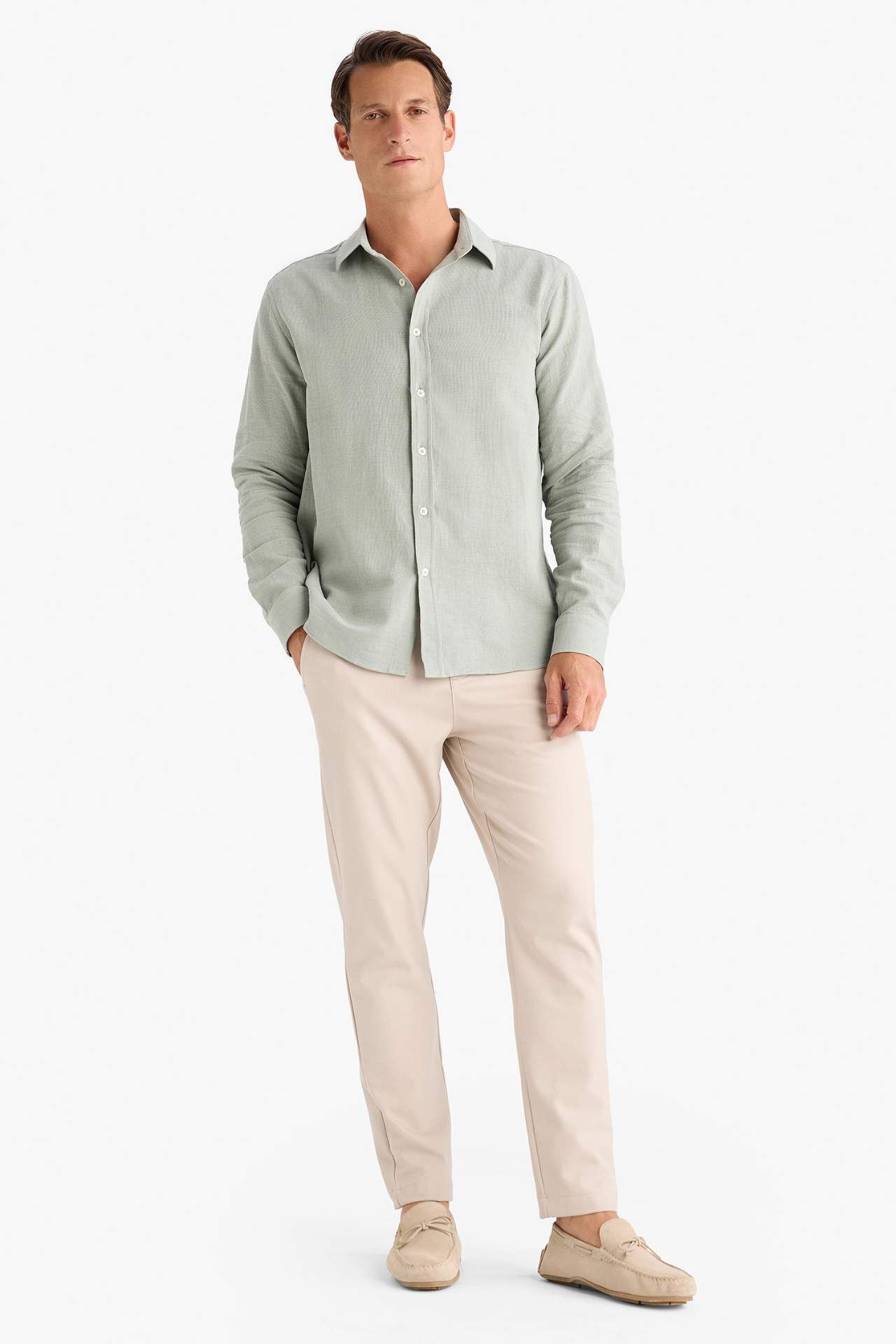 %100 pamuk kumaştan üretilen regular fit ince kumaş polo yaka uzun kollu gömlek, hafif yapısıyla nefes alabilirlik sağlar. Şık ve rahat tasarımıyla hem iş hem günlük kullanıma uygundur. Pamuk 100%,Pamuk 100%,Pamuk 100%,Pamuk 100%