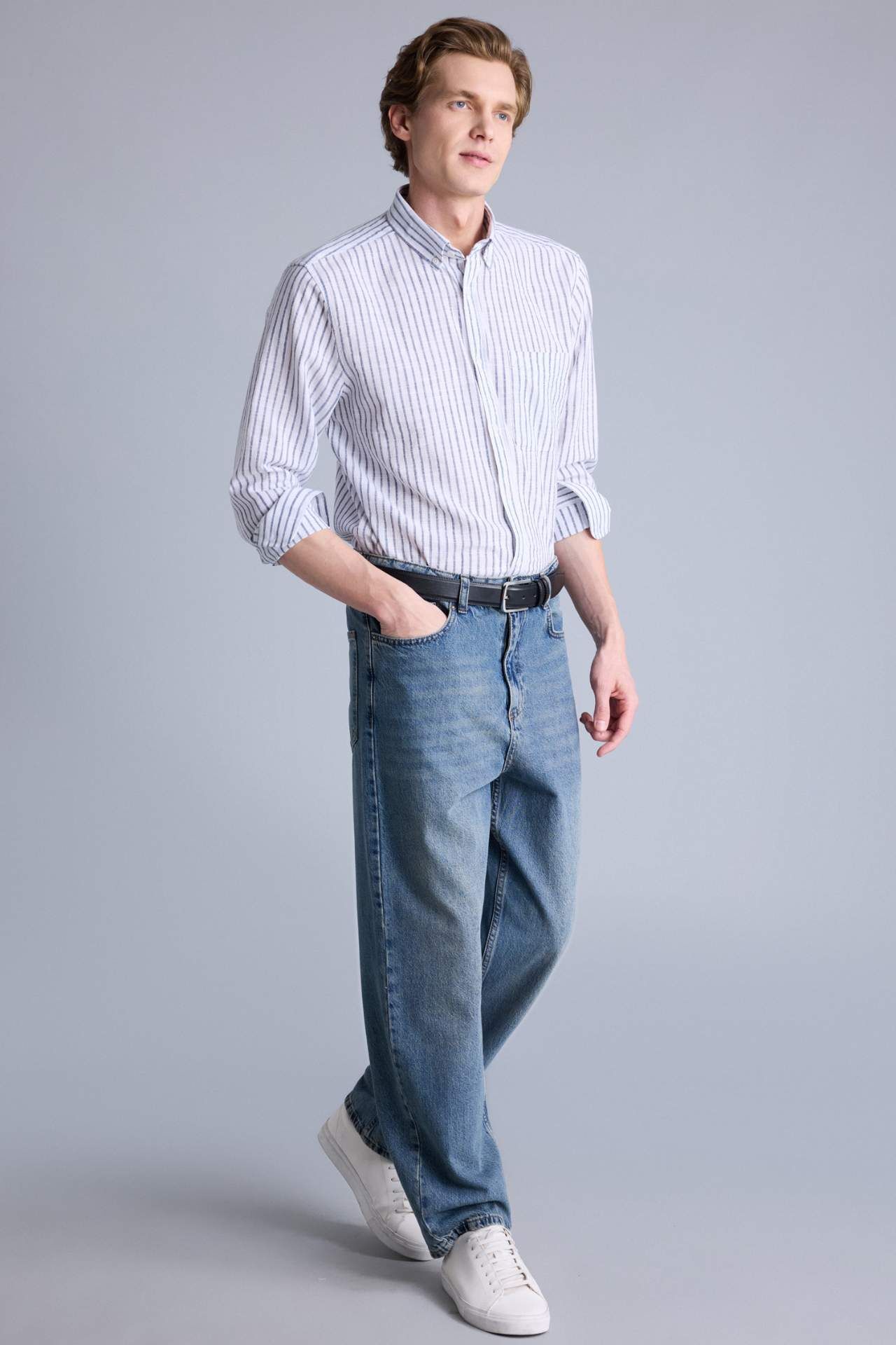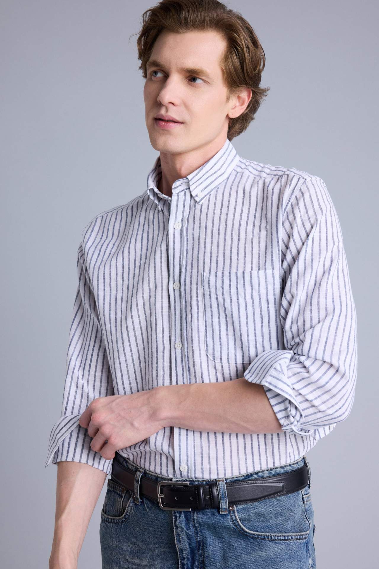 DeFacto Regular Fıt Polo Yaka Uzun Kollu Gömlek