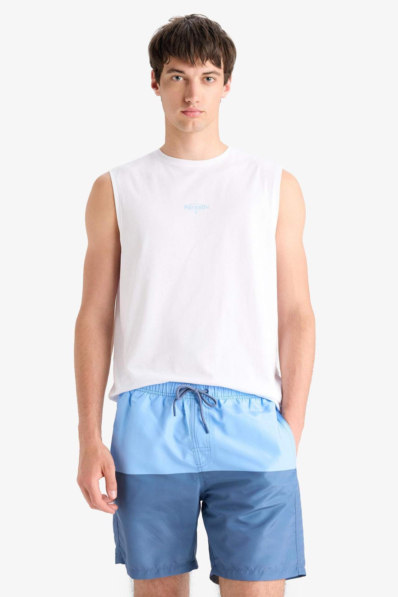 DeFacto Regular Fit Renk Bloklu File Astarlı Diz Üstü Deniz Şortu Z8108AZ25HSBE303
