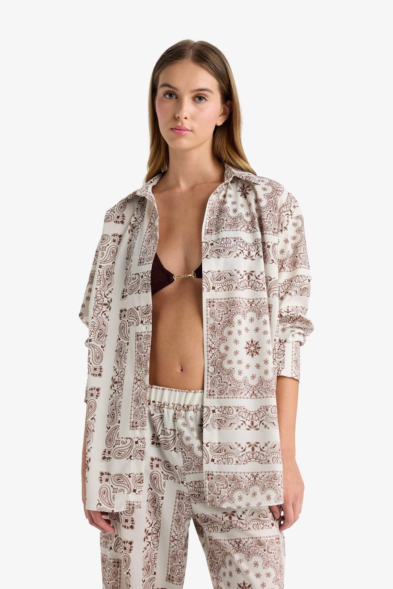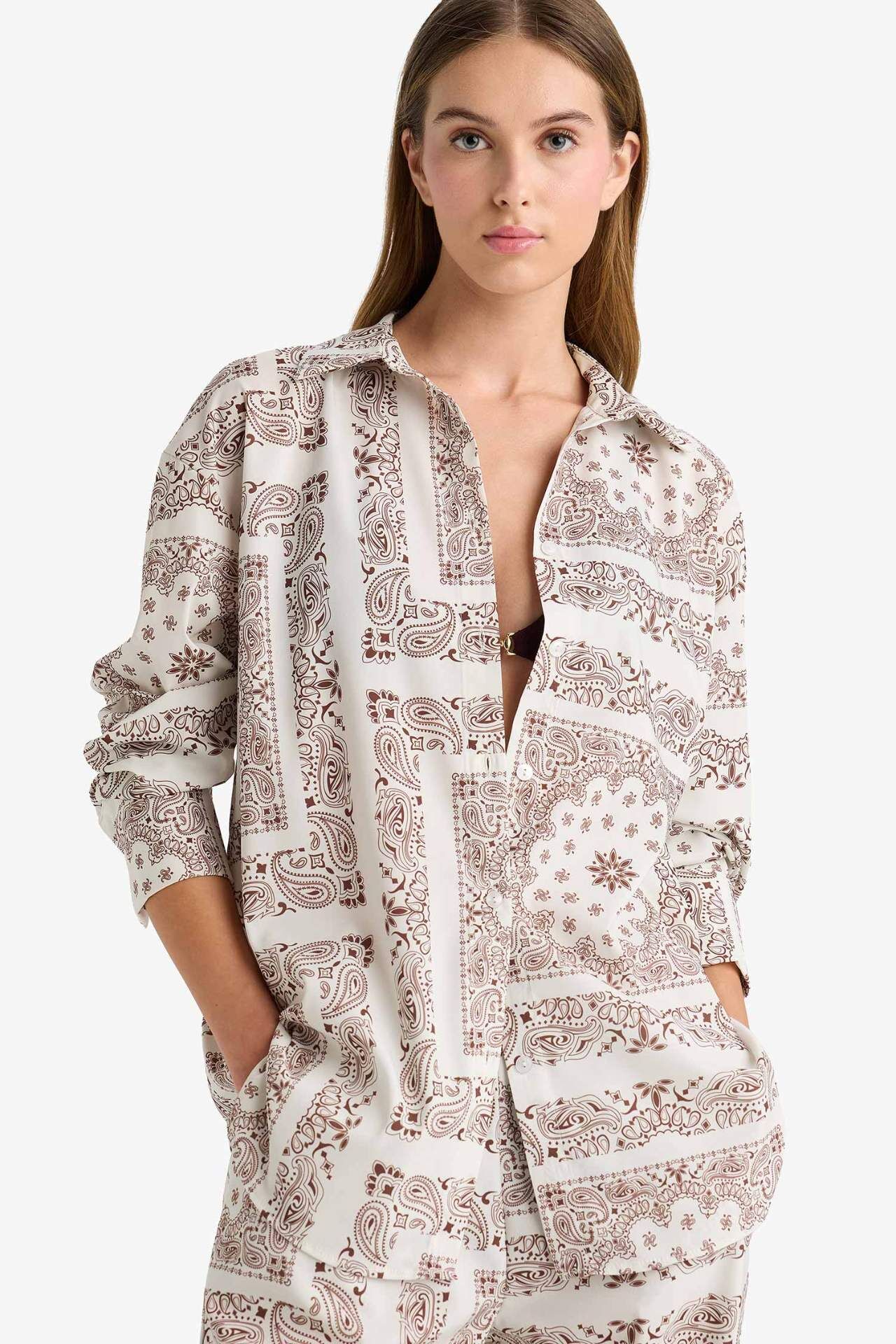 Regular Fit Şal Desenli Plaj Gömleği-Fall in Love F8334AX25HSBN166