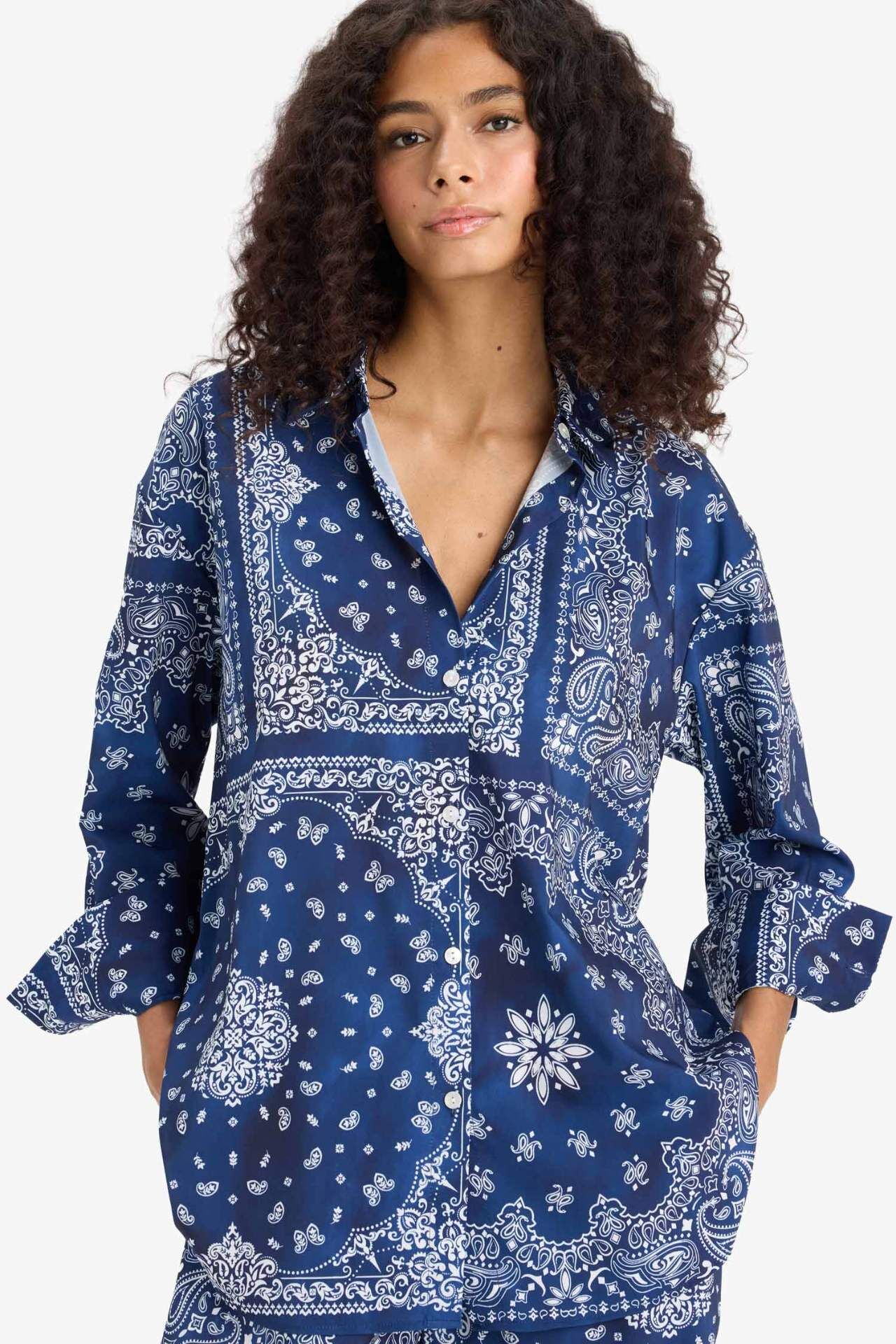 Regular Fit Şal Desenli Plaj Gömleği-Fall in Love F8334AX25HSNV241