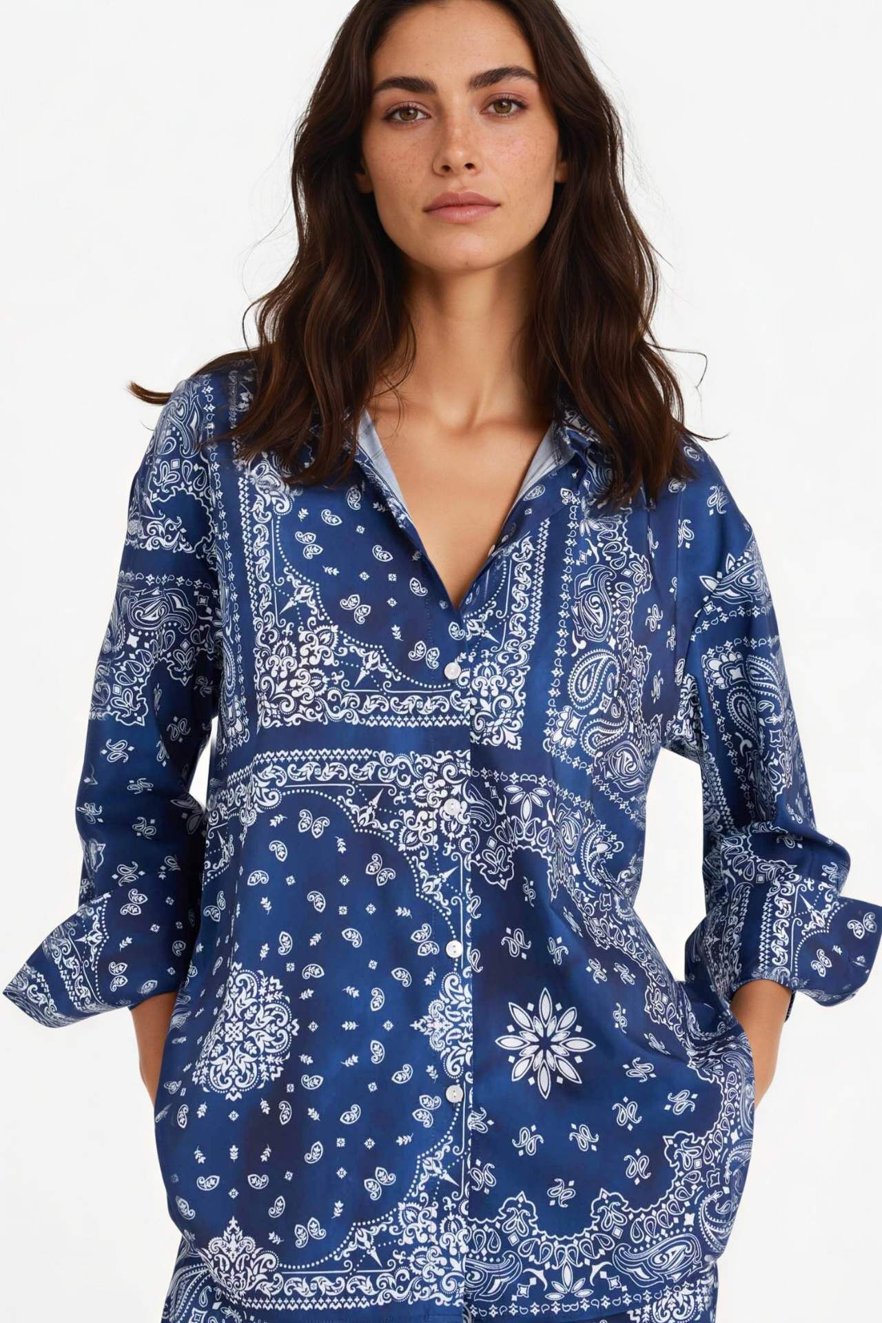 DeFacto Regular Fit Şal Desenli Plaj Gömleği-Fall in Love F8334AX25HSNV241