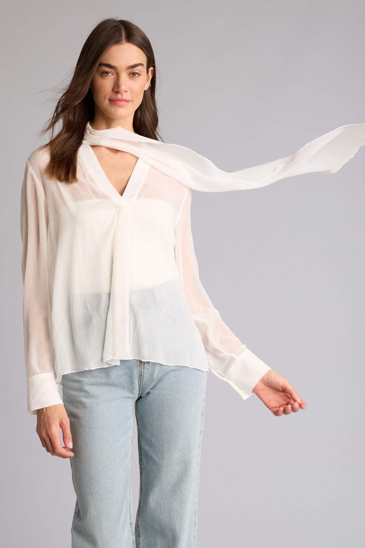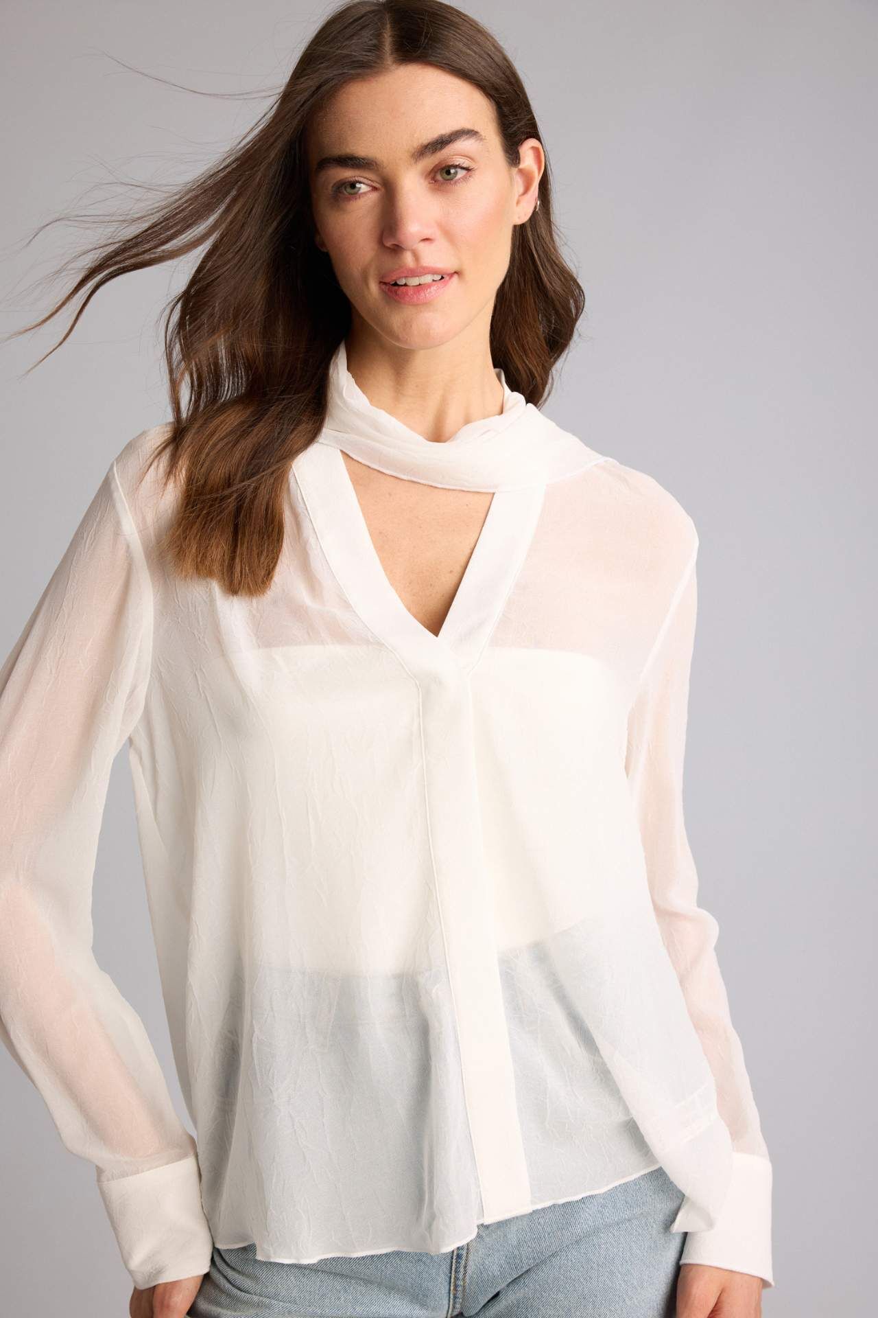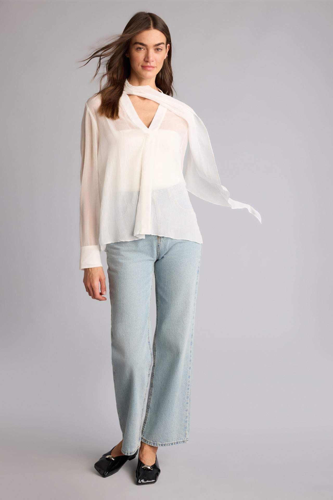 DeFacto Regular Fıt Şal Yaka Krinkıl Kumaş Uzun Kollu Bluz