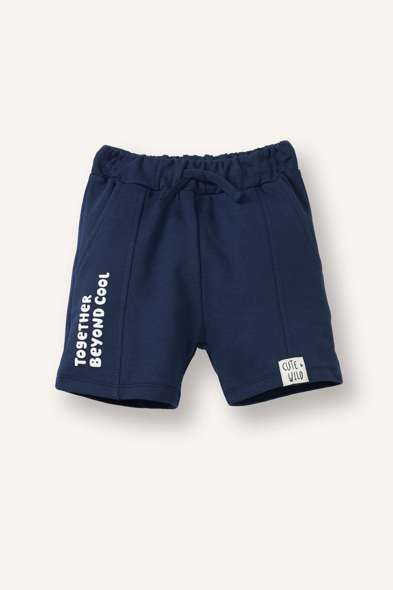 DeFacto Regular Fıt Slogan Baskılı Sweatshirt Kumaşı Şort Erkek Bebek
