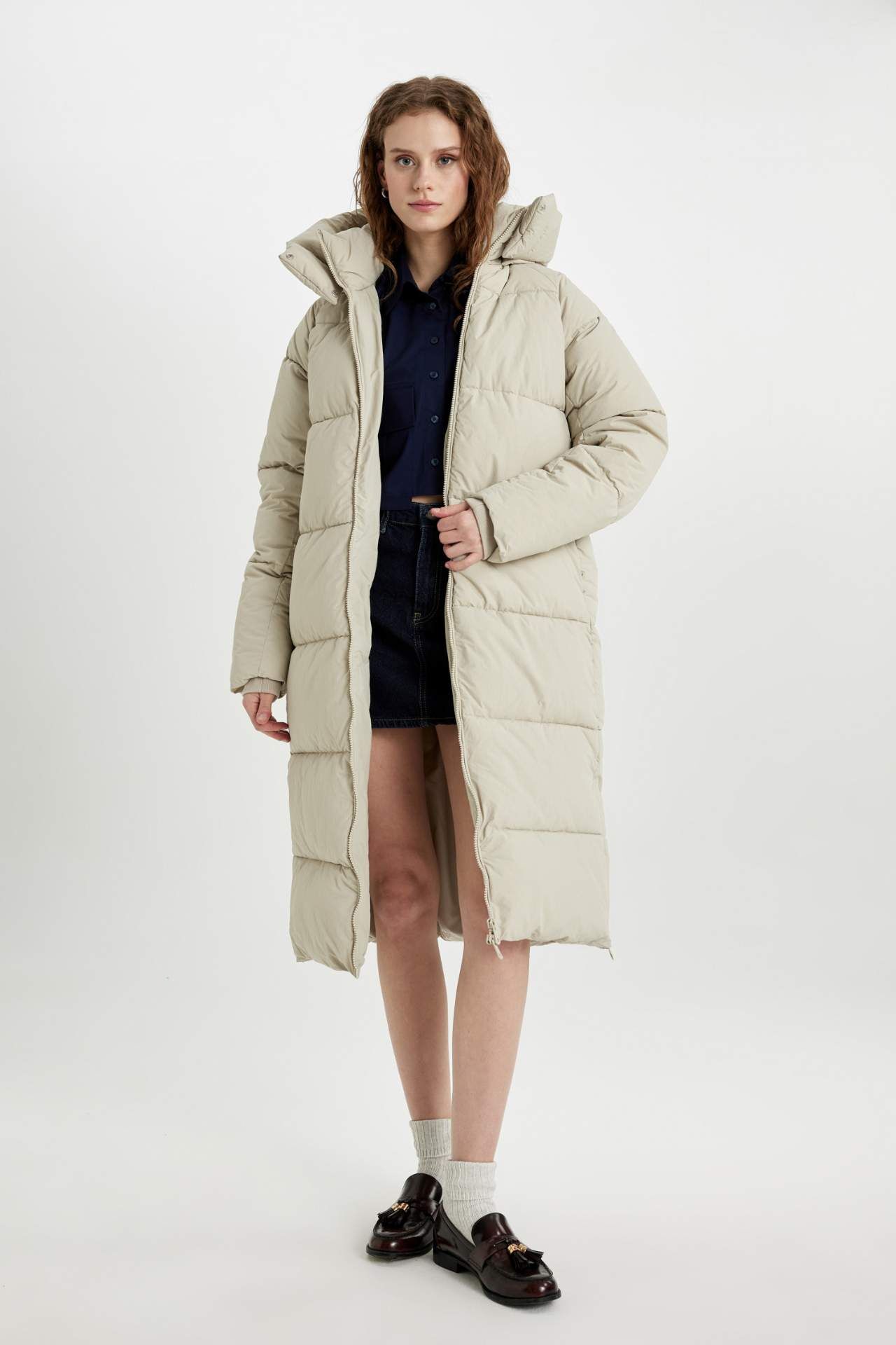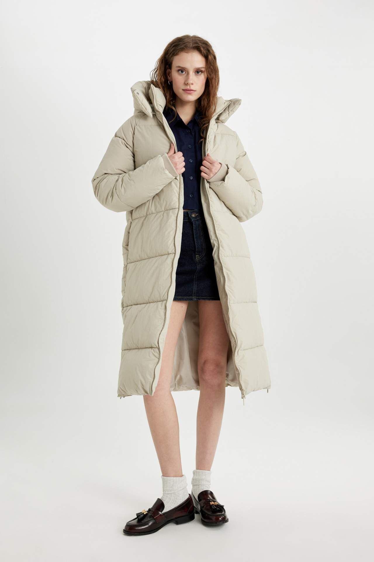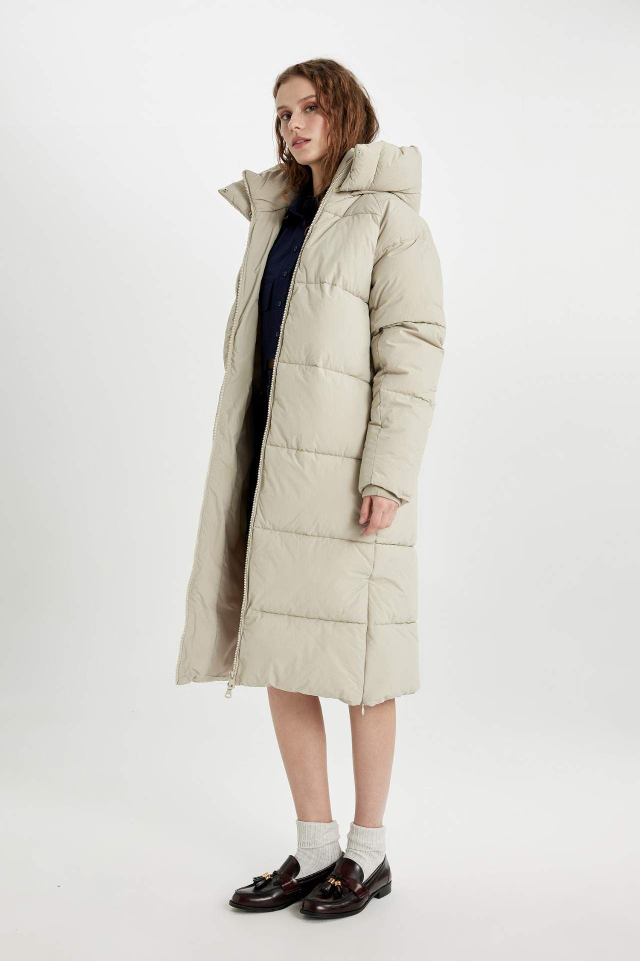 DeFacto Regular Fit Su İtici Kumaş Kapüşonlu Uzun Mont Parka