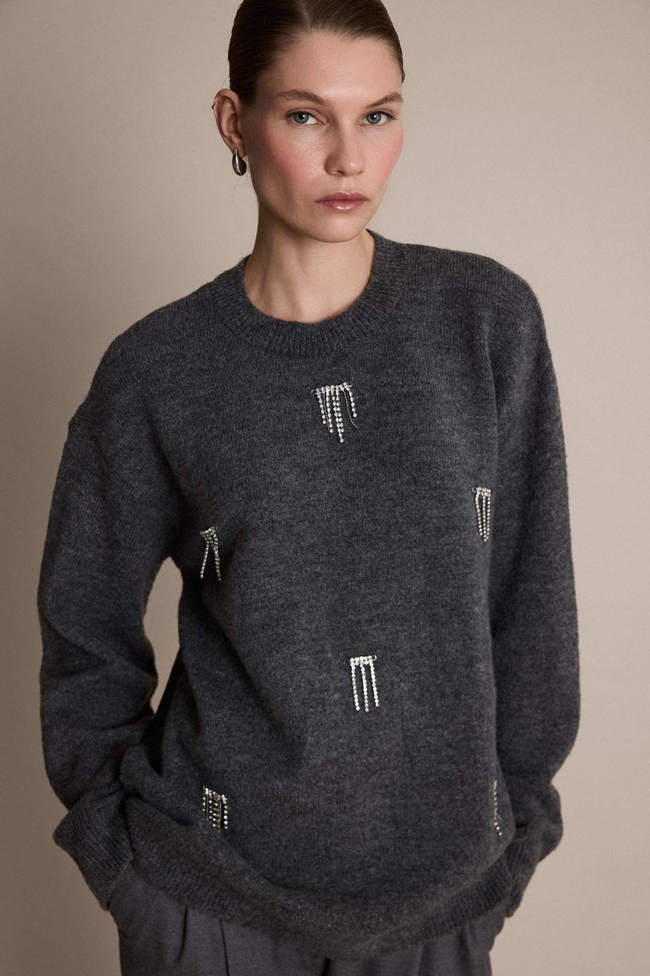 Regular Fit Taşlı Triko Tunik