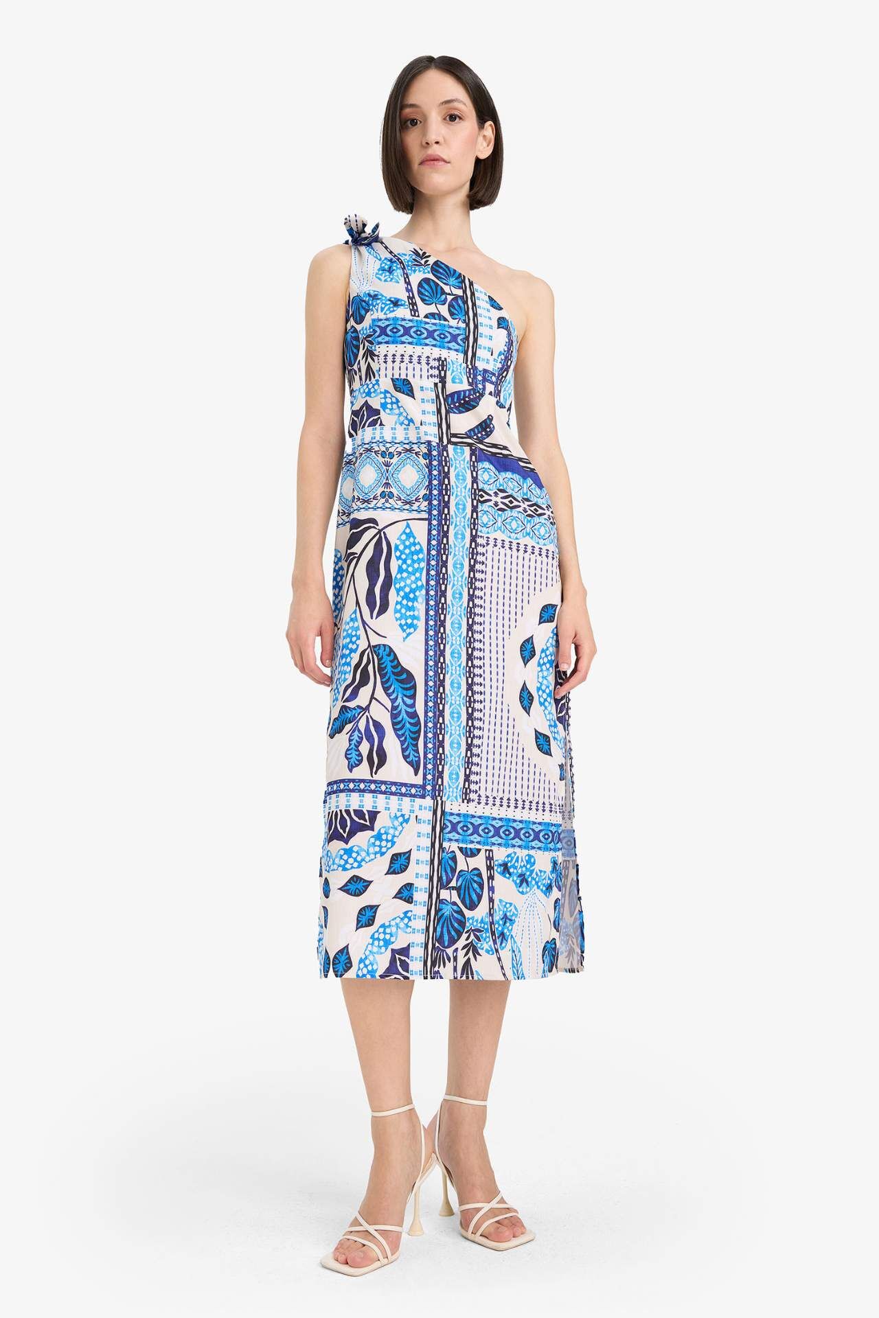 Regular Fit Tropikal Desenli Tek Omuzlu Poplin Plaj Elbisesi-Fall in Love