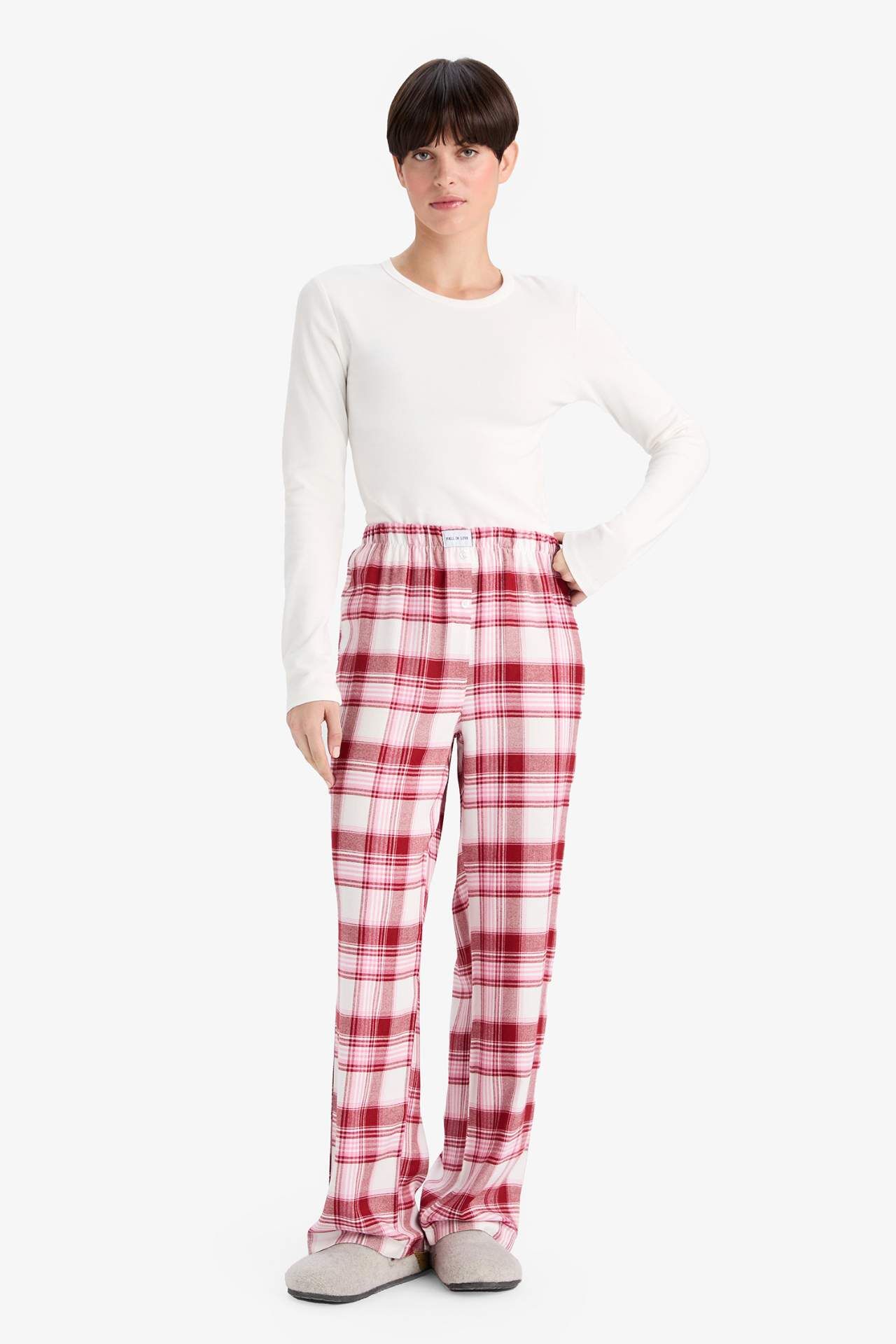Regular Fit Uzun Kareli Pijama Altı-Fall in Love