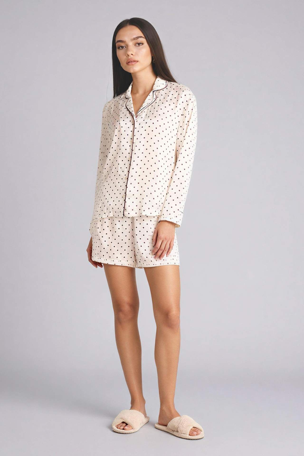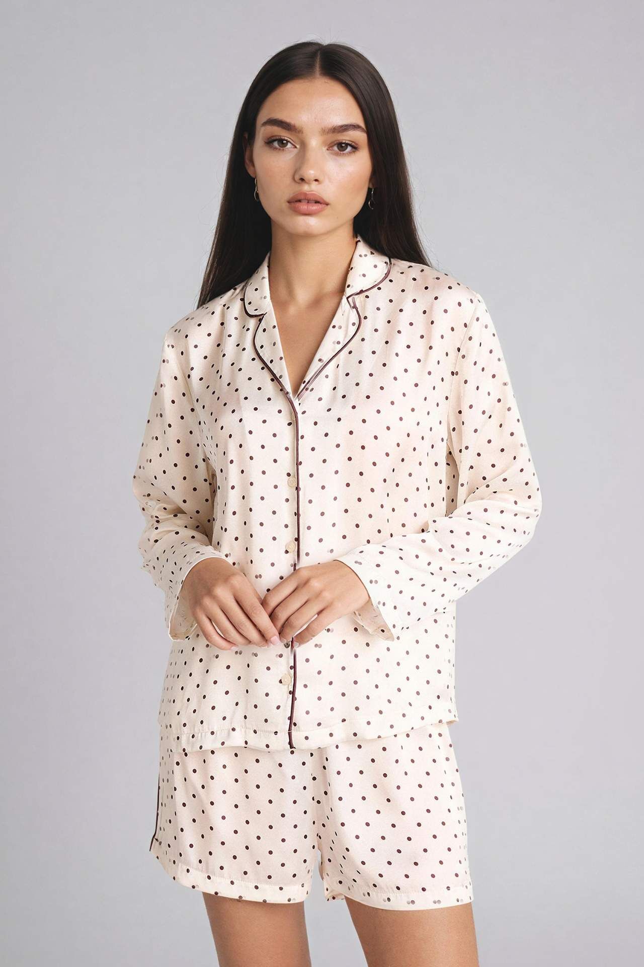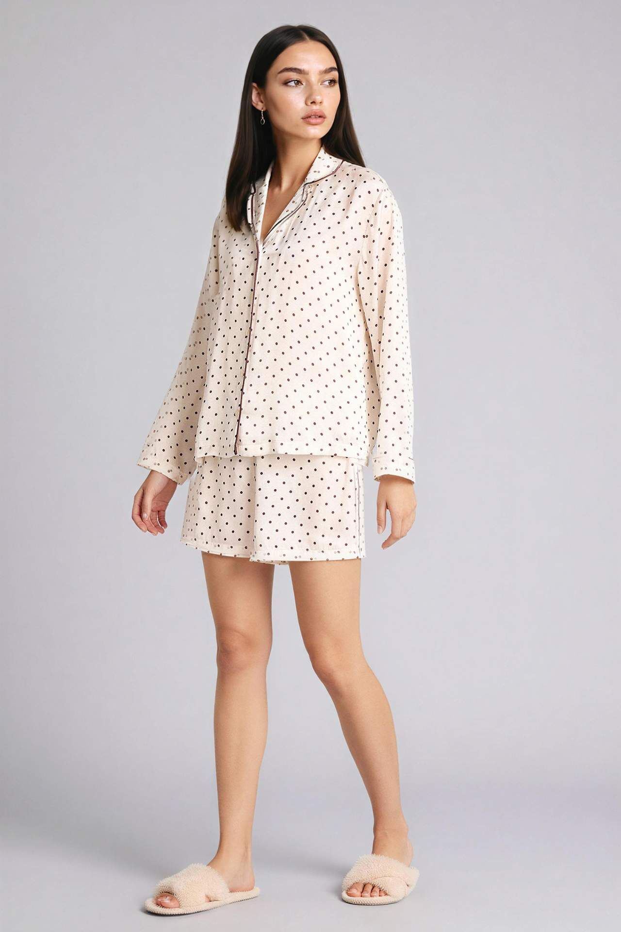 Puantiyeli saten pijama takımı, yumuşak ve parlak dokusuyla konforlu bir uyku deneyimi sunar. Şık puantiye deseniyle hem rahat hem de sevimli bir görünüm sağlar. Elastan 3%,Poliester 97%,Elastan 3%,Poliester 97% Manken Bedeni: Göğüs: 88 Boy: 1,73 Basen: 89 Bel: 60
