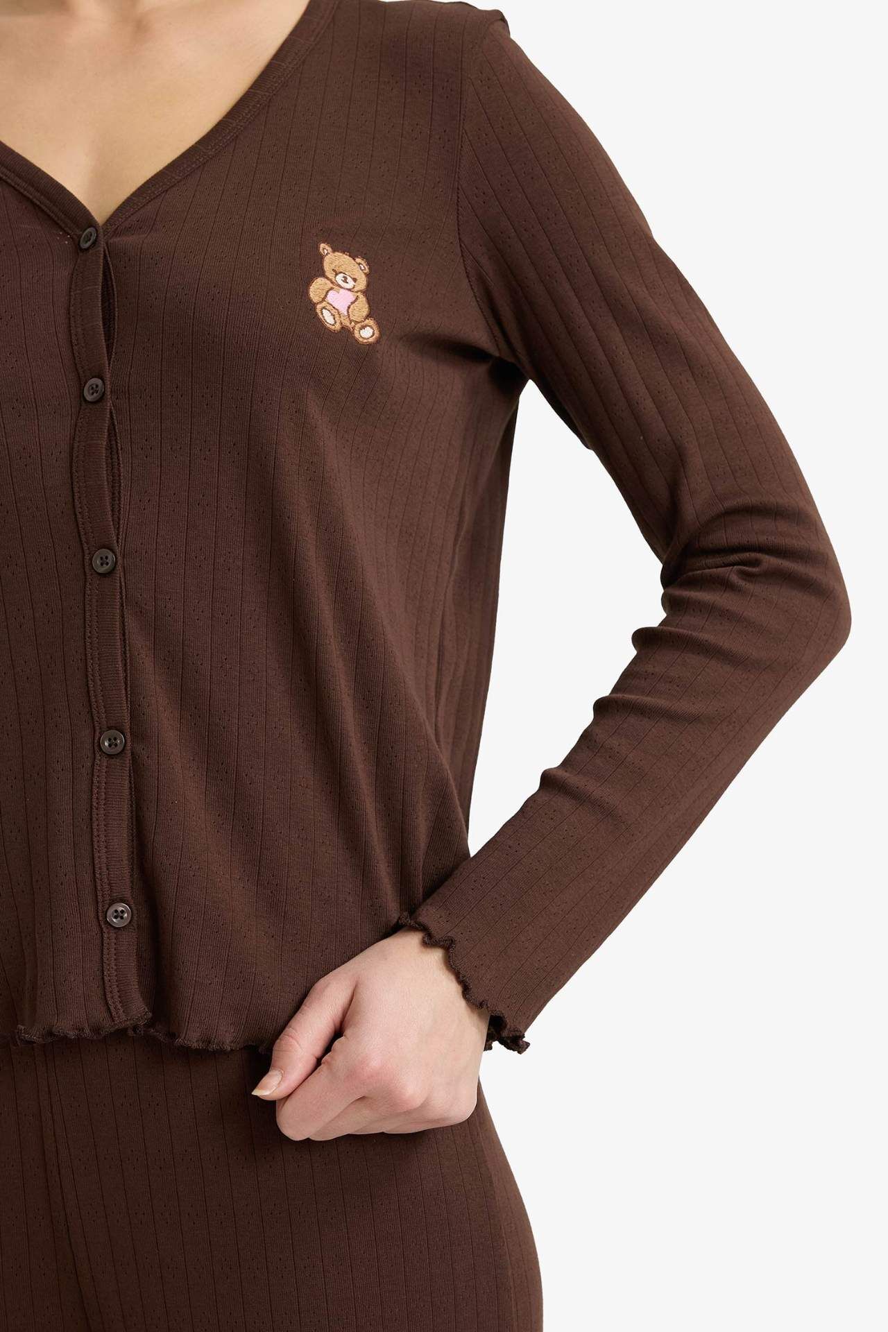 Pijama takımı regular fit ayıcıklı düğmeli uzun kollu üst ve uzun alt, yumuşak dokusu ve sevimli tasarımıyla gece rutinine konfor katar. Rahat kesimi sayesinde hareket özgürlüğü sunarken ayıcıklı detaylarıyla sıcak ve keyifli bir görünüm sağlar. Pamuk 100%,Pamuk 100%