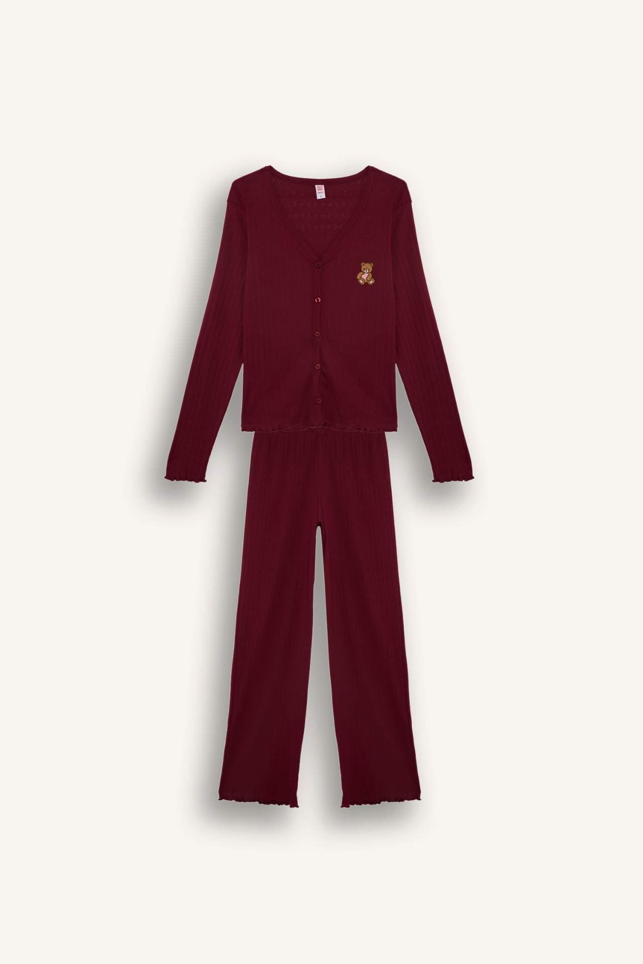 Regular fit kesimiyle rahatlık sunan uzun kollu üst ve uzun alt pijama takımı, yumuşak kumaşıyla konforlu bir uyku deneyimi sağlar. Şık ve sade tasarımıyla evde keyifli dinlenme anlarına eşlik eder. Pamuk 100%,Pamuk 100%