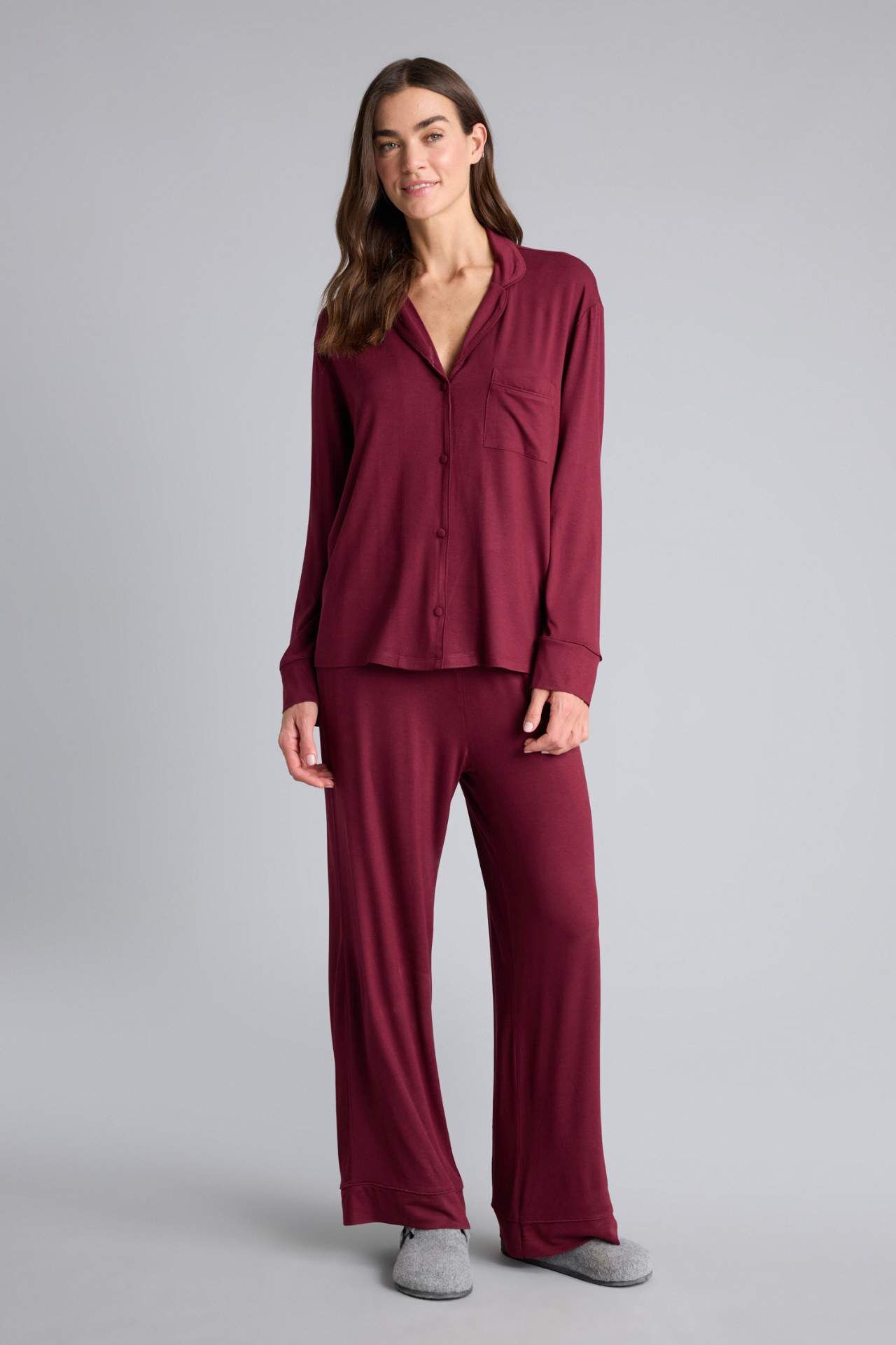 Yetişkinler için Fall in Love marka bordo takım. Uzun kollu pijama yaka üst ve uzun boy pantolon içeren 2'li takım. Regular fit kesim ve temel çeşit ile ilkbahar/yaz mevsimlerinde ideal seçim. Elastan 3%,Viskoz 97%,Elastan 3%,Viskoz 97% Manken Bedeni: Göğüs: 89 Boy: 1,78 Basen: 92 Bel: 63