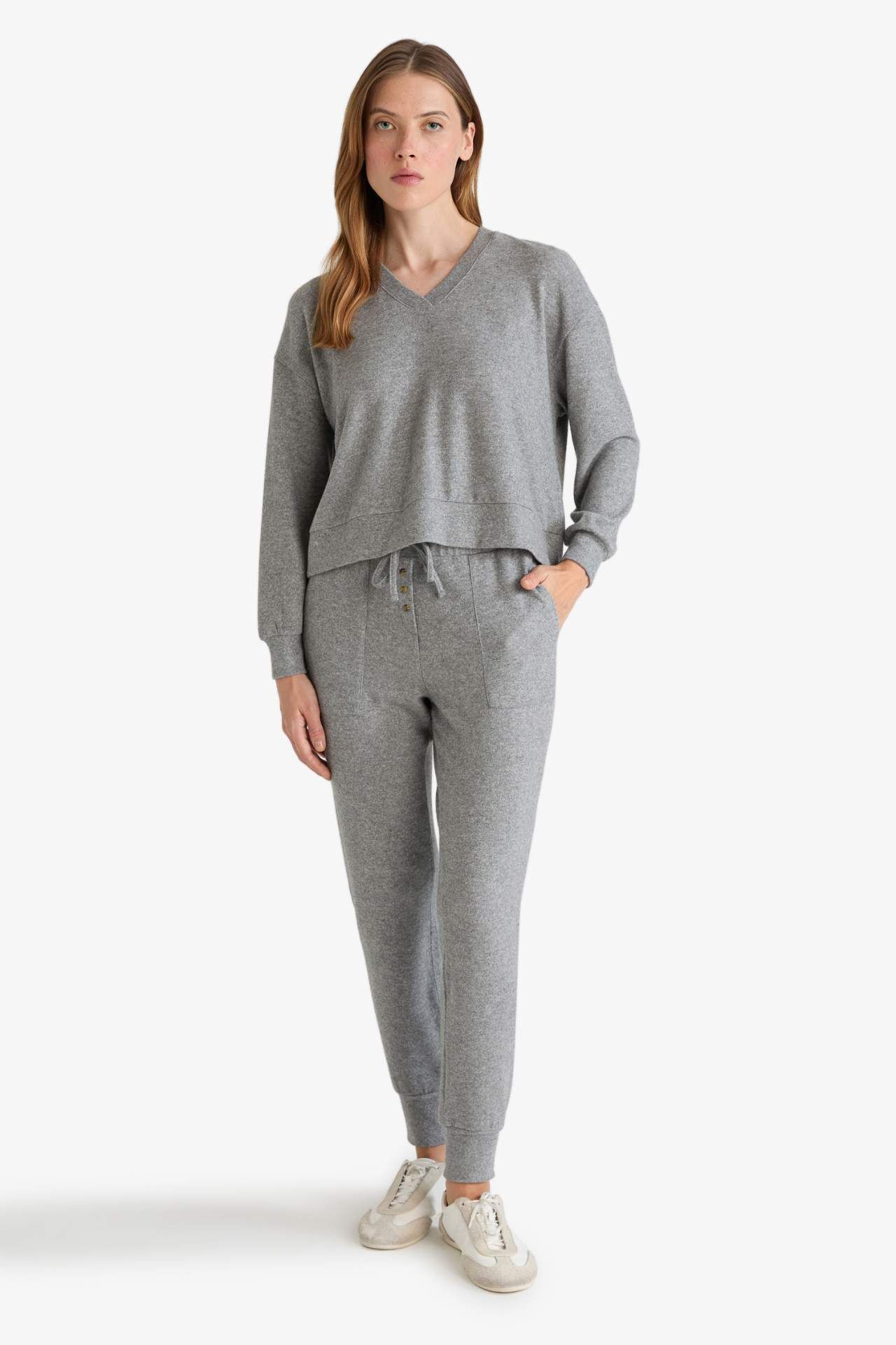 DeFacto Regular Fit Uzun Kollu 2'li Velur Takım Fall in Love