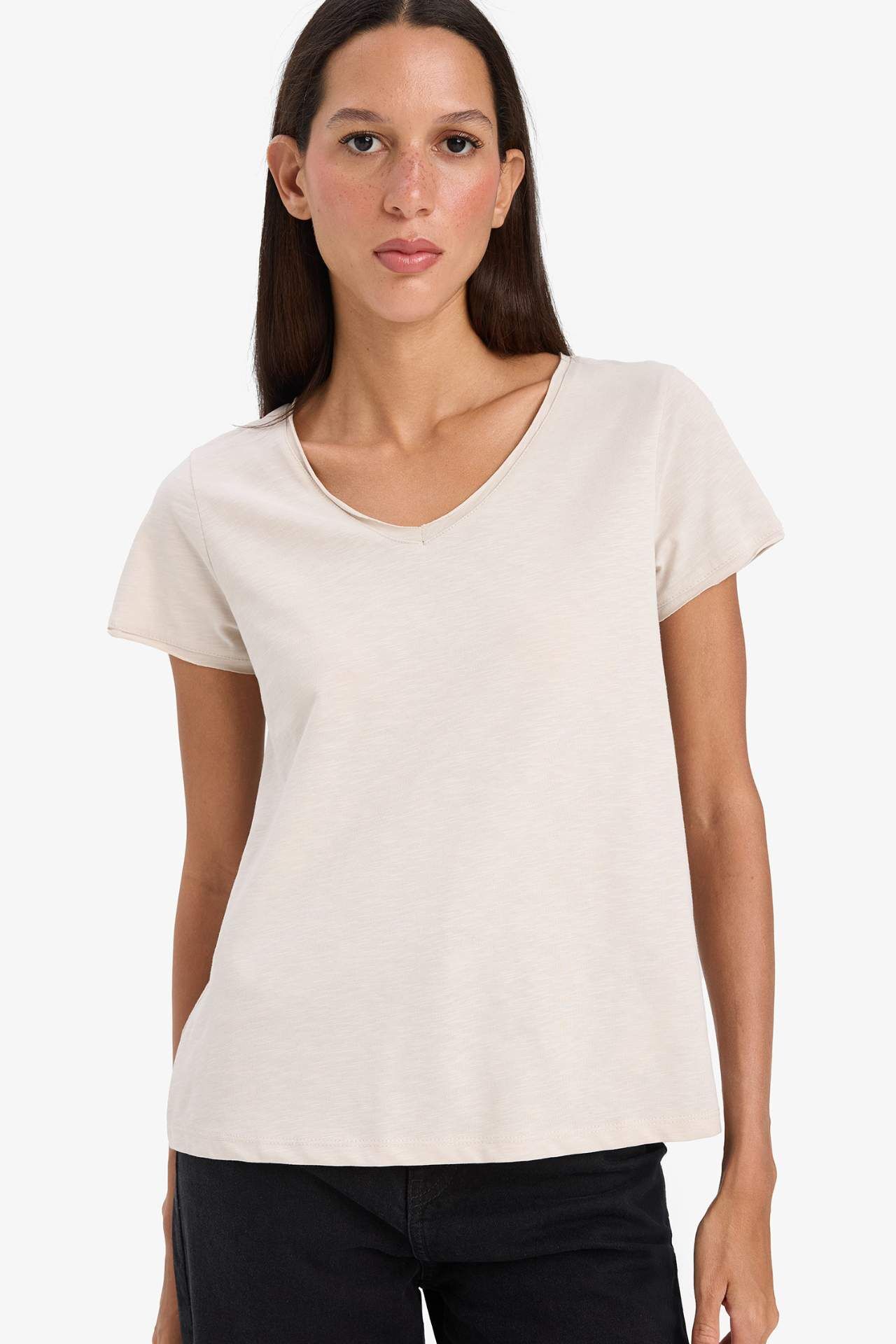 DeFacto Regular Fit V Yaka Basic Düz Kısa Kollu Tişört K1507AZ25SMBG186