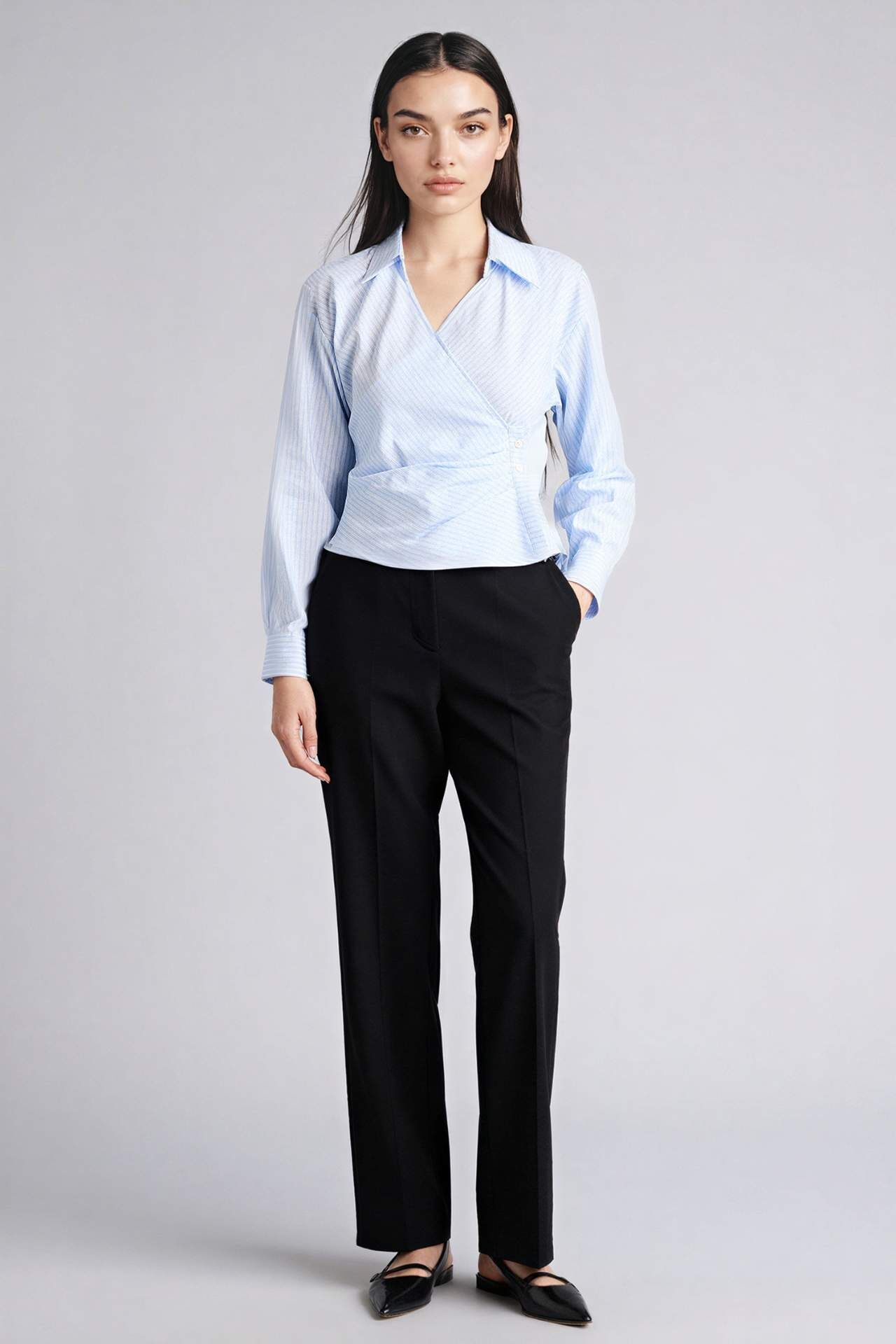 Klasik çizgili deseniyle öne çıkan Çizgili Bengalin Gömlek, şık ve düzenli bir görünüm sunar. Esnek ve hafif bengalin kumaşı sayesinde gün boyu konfor sağlar. Pantolon veya eteklerle kombinlenerek hem iş hem de günlük stilinizde rahatlıkla kullanılabilir. Pamuk 64%,Elastan 7%,Poliester 29% Manken Bedeni: Göğüs: 85 Boy: 1,77 Basen: 89 Bel: 62