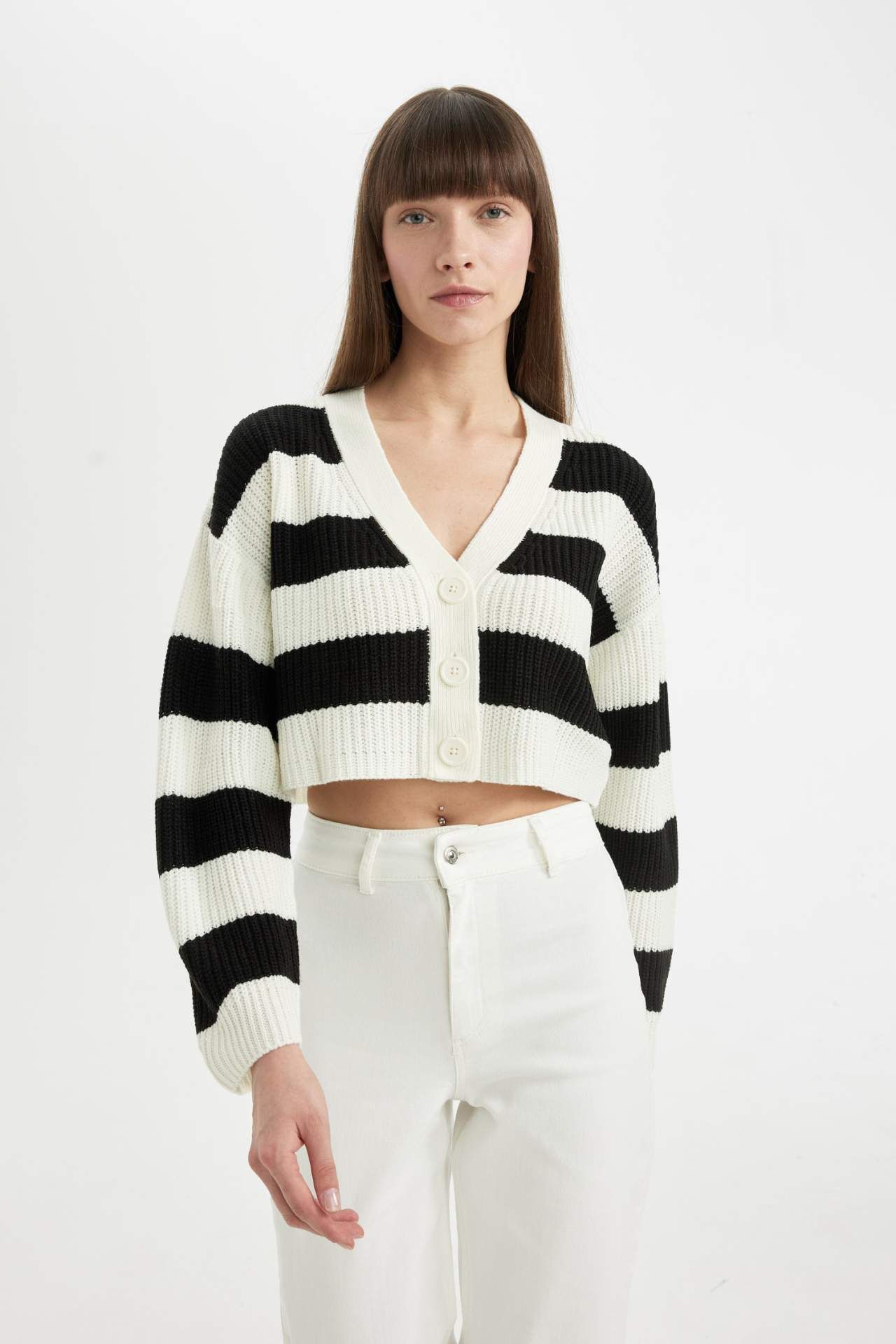 V yaka tasarımı ve şık çizgili deseniyle öne çıkan bu regular fit triko hırka, hem klasik hem modern stillere uyum sağlar. Yumuşak dokusu sayesinde gün boyu konfor sunar ve serin havalarda ideal bir tamamlayıcıdır. Akrilik 94%,Poliester 3%,Yün 3% Manken Bedeni: Göğüs: 85 Boy: 1,78 Basen: 89 Bel: 60
