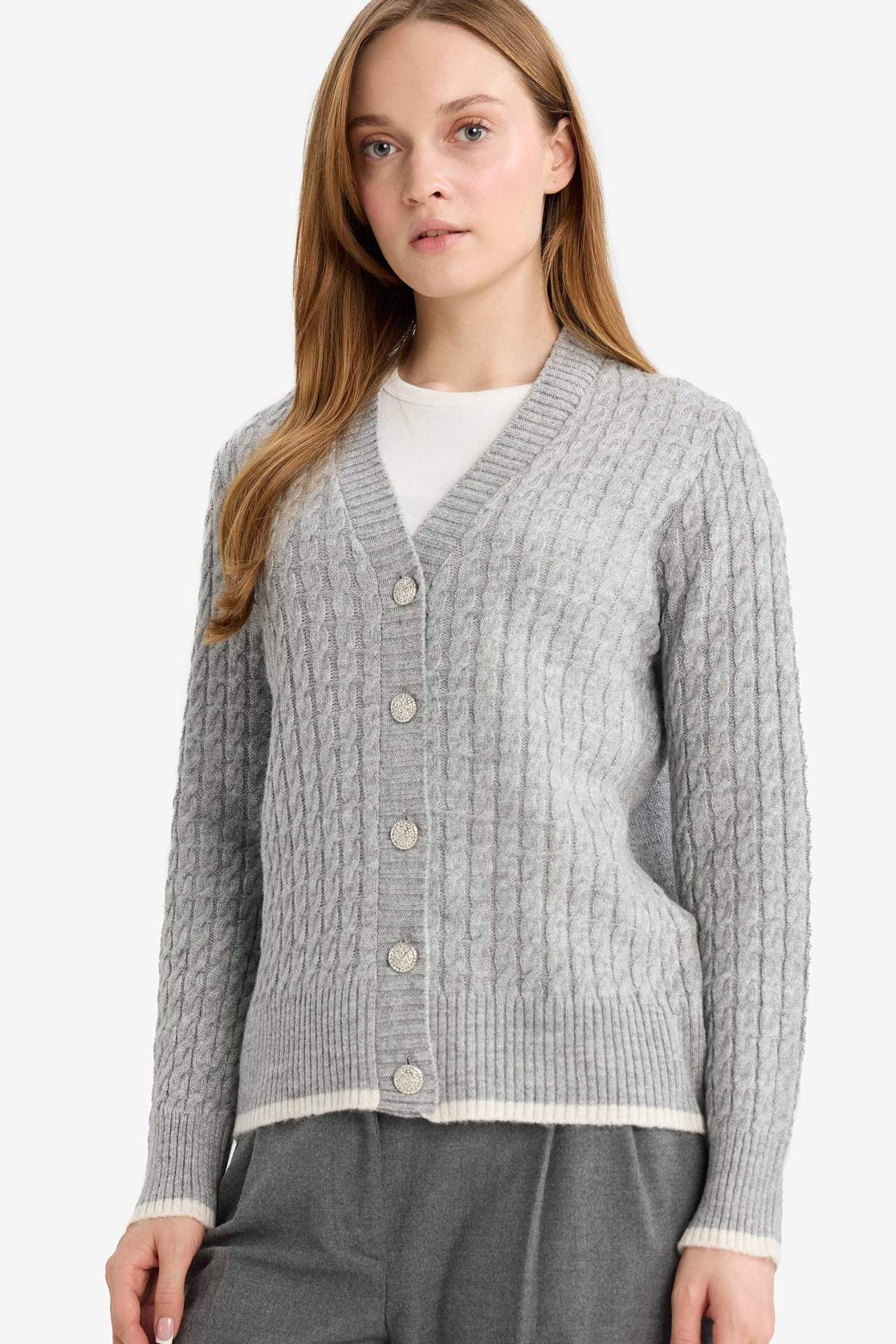 Regular Fit V Yaka Düğmeli Hırka
