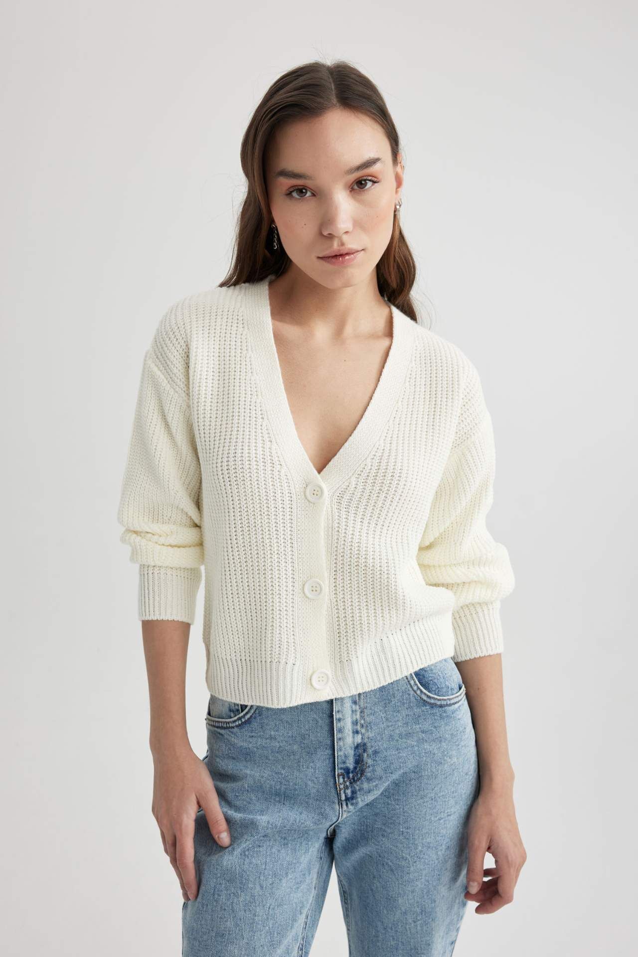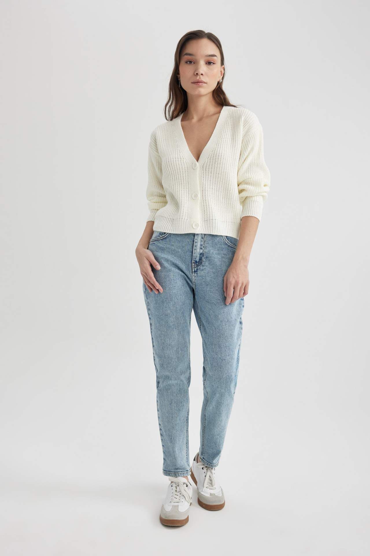 Regular Fit V Yaka Hırka, klasik kesimi ve yumuşak dokusuyla şık ve rahat bir kullanım sunar. V yaka detayı, katmanlı kombinlere zarif bir dokunuş ekler. Akrilik 100%