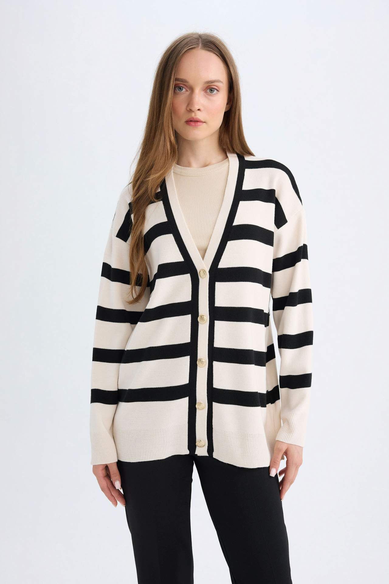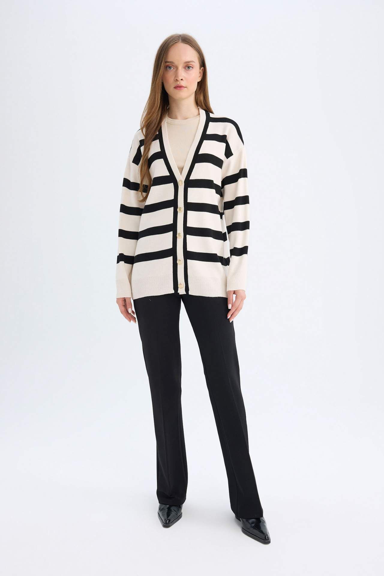 DeFacto Regular Fit V Yaka Hırka D2445AX24WNBK81