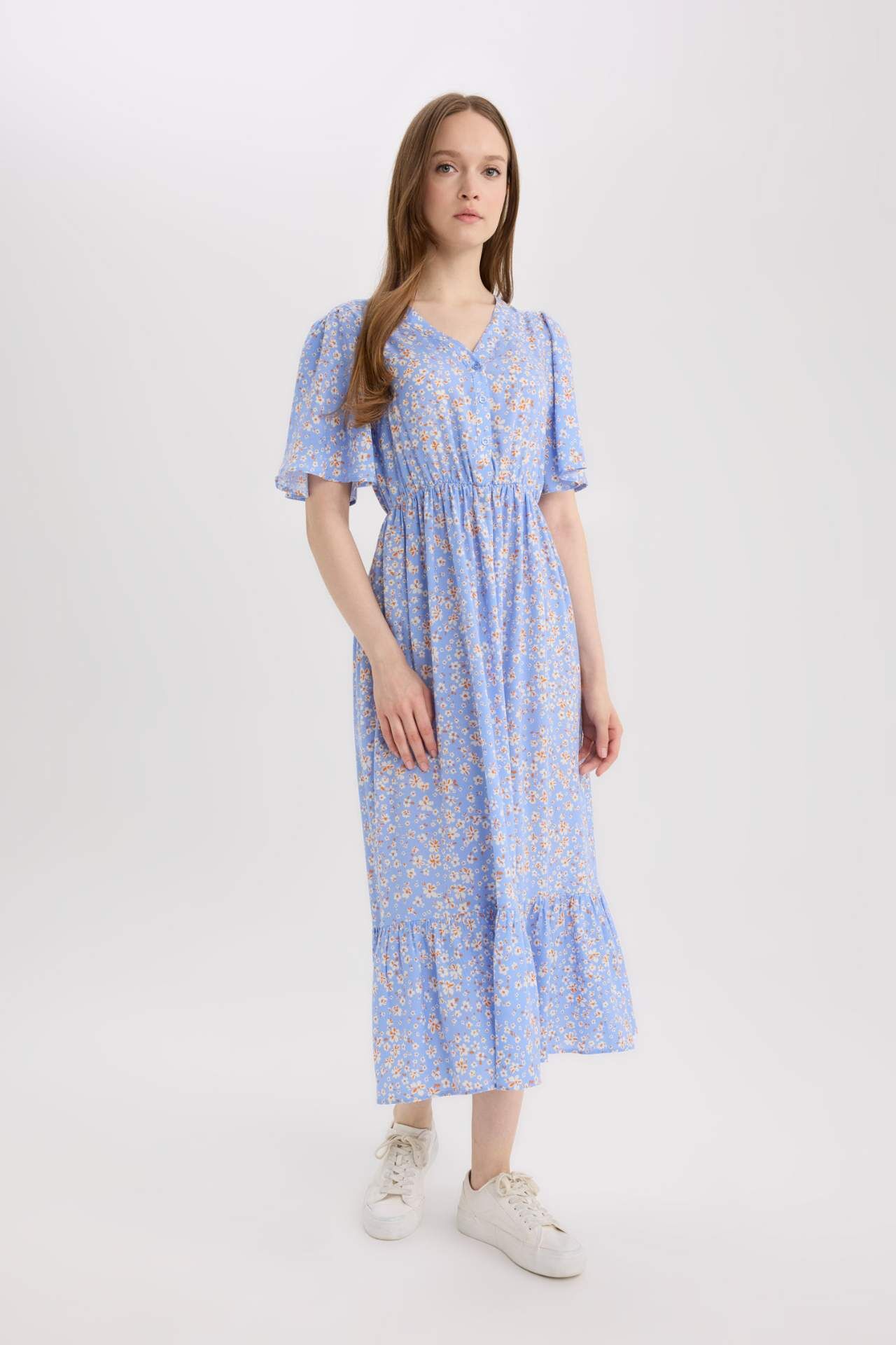 Yetişkin kadınlar için mavi çiçek desenli elbise. Regular fit kalıbı ve kısa kollu yapısıyla geleneksel bir tarz sunar. İlkbahar/Yaz için uygun olan sürdürülebilir bir ürün. Gömlek yaka detayıyla şıklığı tamamlar. Viskoz 100%,Viskoz 100%,Viskoz 100%,Viskoz 100%,Viskoz 100%,Viskoz 100%,Viskoz 100%,Viskoz 100%,Viskoz 100%,Viskoz 100%,Viskoz 100%,Viskoz 100% Manken Bedeni: Göğüs: 84 Boy: 1,74 Basen: 92 Bel: 61