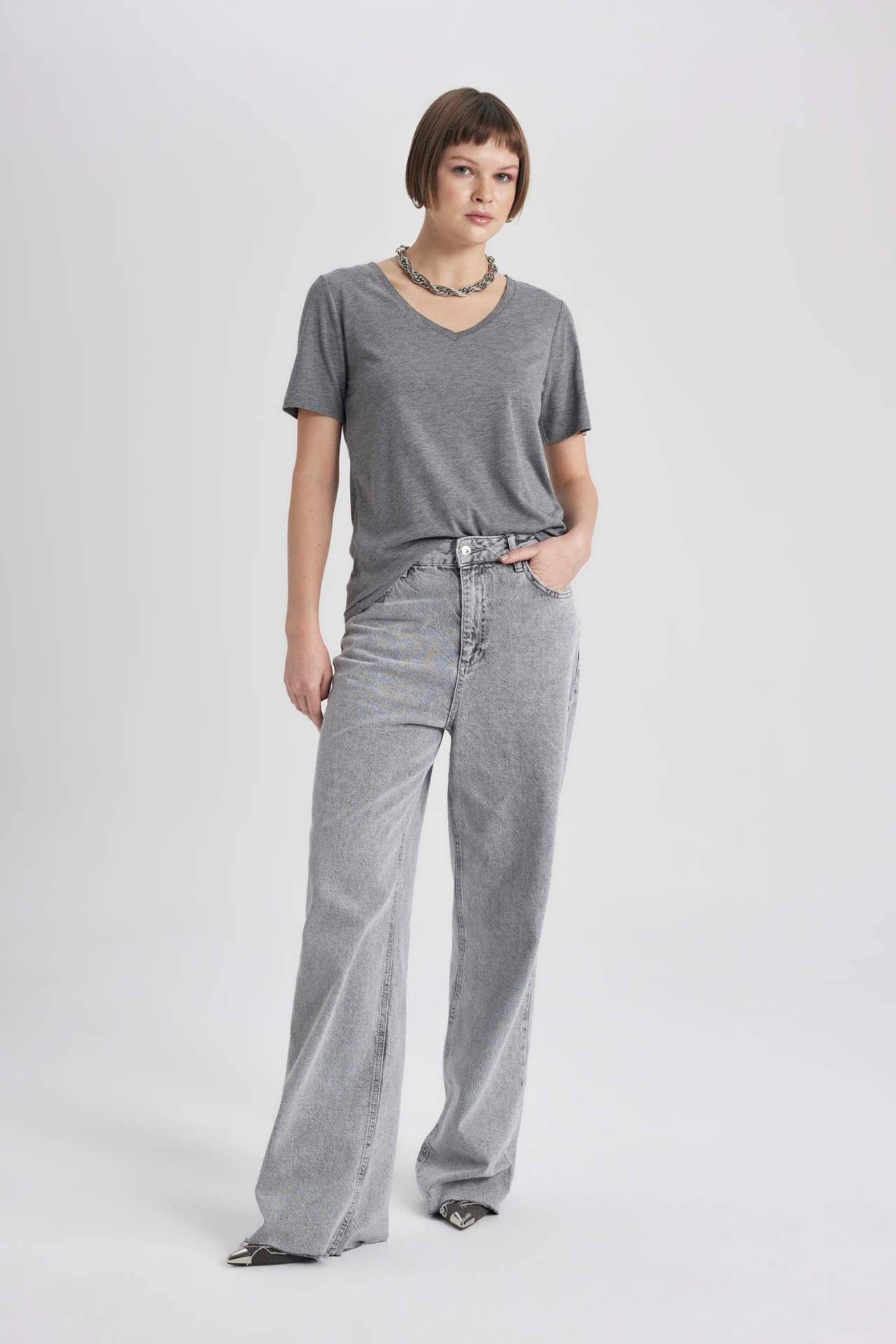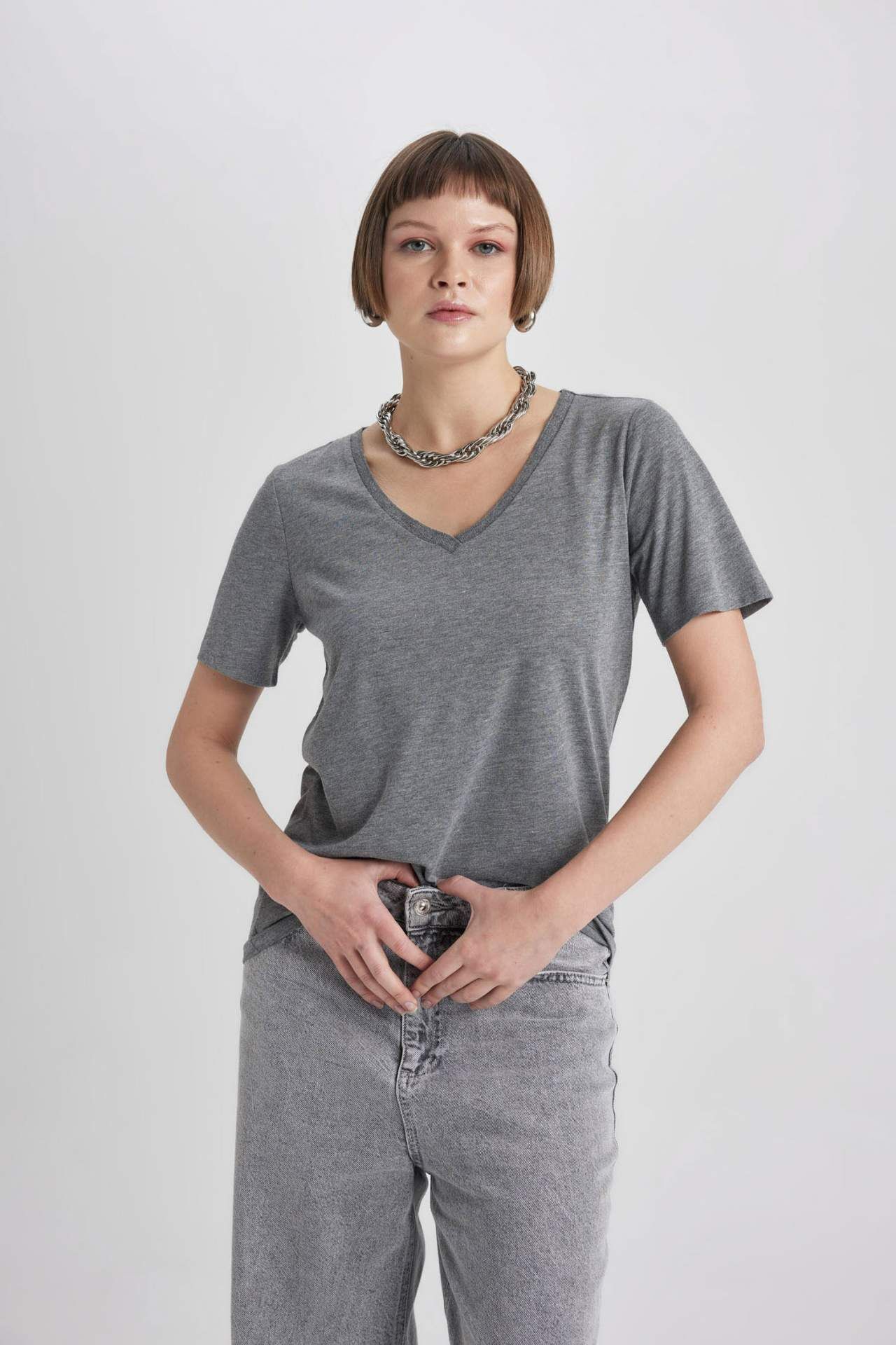 DeFacto Regular Fit V Yaka Kısa Kollu Tişört K5057AZ24SPAR53
