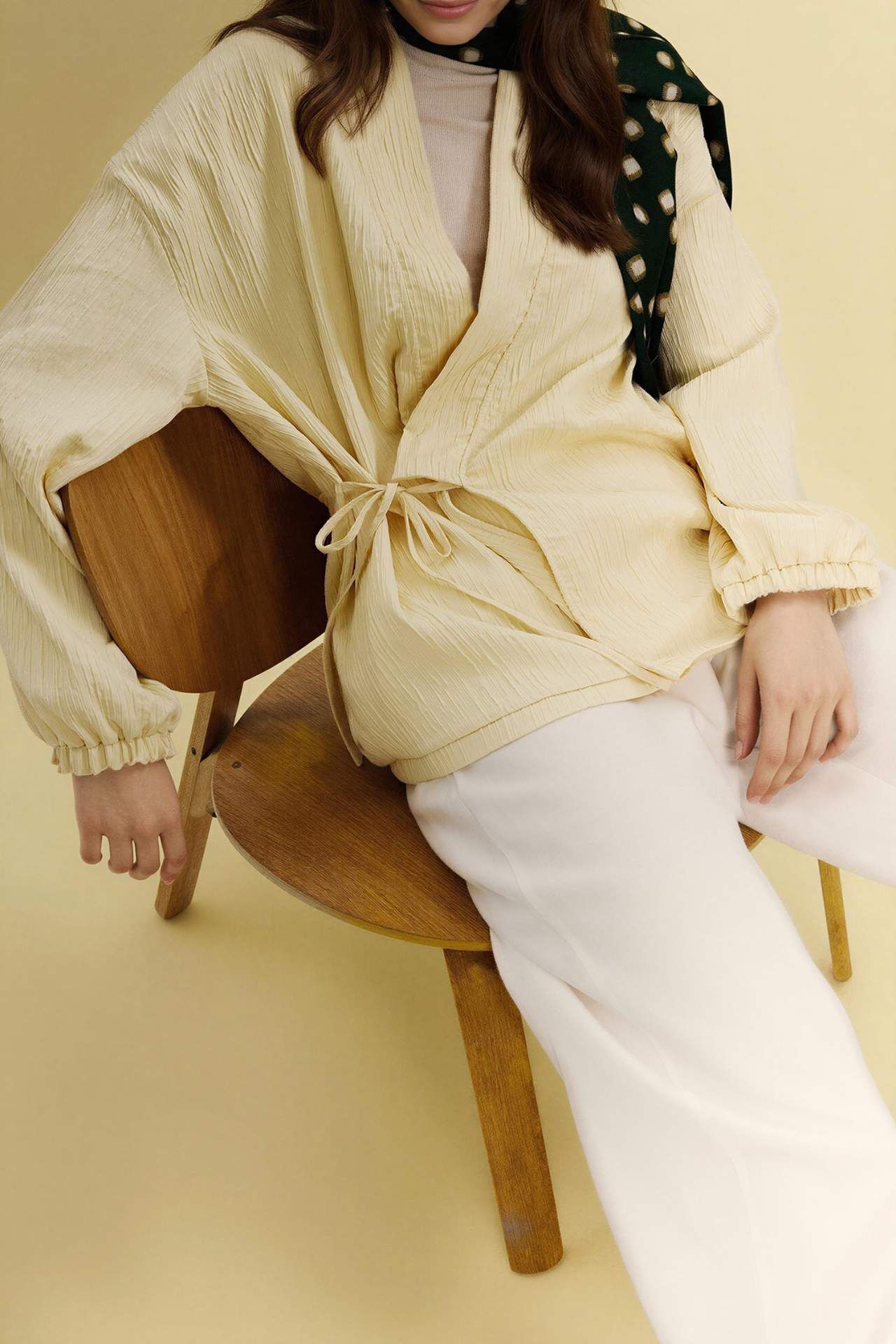 İlkbahar ve yazın vazgeçilmezi sarı renkli krinkıl kumaştan üretilen yetişkin blazer ceket. Kordon kapamalı ve V yaka detayıyla şıklığınızı tamamlayın. Uzun kollu, regular fıt kesimiyle her tarza uyum sağlar. Kadın blazer ve yelek koleksiyonunun temel parçası. Elastan 2%,Poliester 98% Manken Bedeni: Göğüs: 88 Boy: 1,72 Basen: 90 Bel: 60