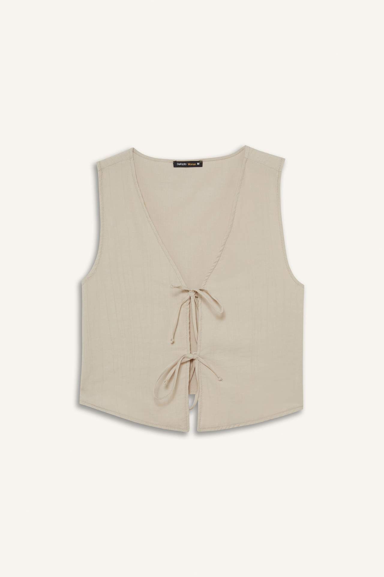 Regular Fit V Yaka Krinkıl Kumaş Kolsuz Bluz