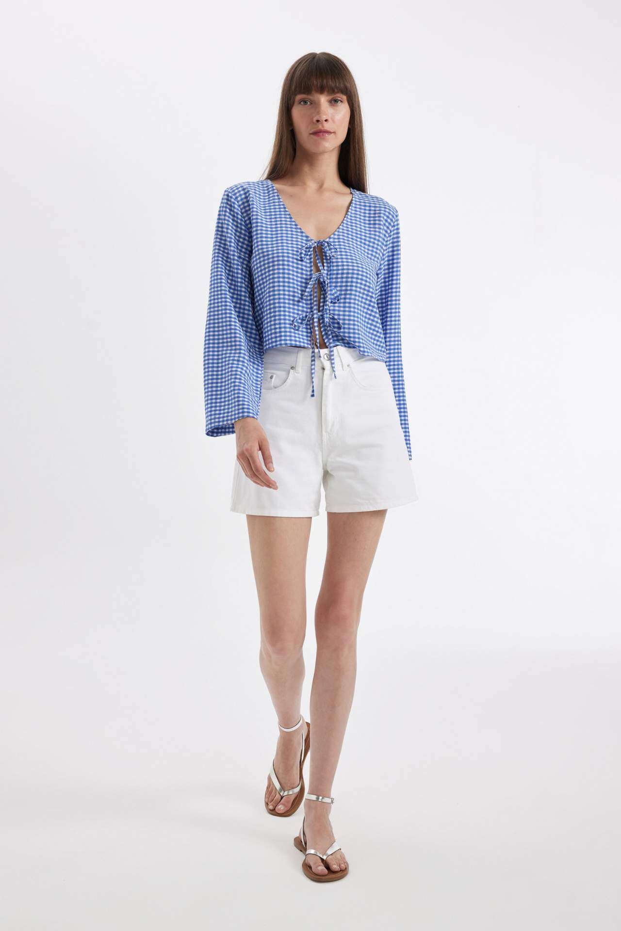 DeFactoFit Regular Fit V Yaka Krinkıl Uzun Kollu Bluz