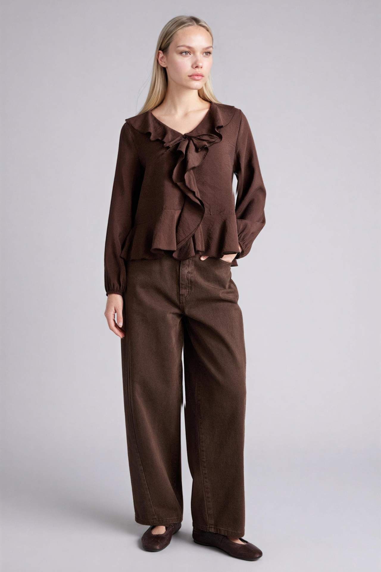 Regular Fıt V Yaka Modal Uzun Kollu Bluz