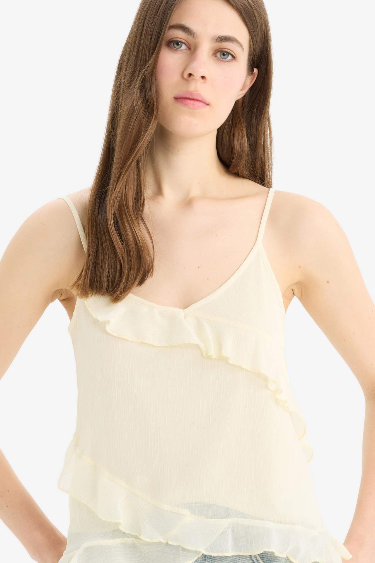 Zarif şifon kumaşı ve V yaka tasarımıyla öne çıkan bu regular fit askılı bluz, hafif ve akışkan yapısıyla feminen bir şıklık sunar. Yaz aylarında hem günlük hem özel kombinlerde rahatlıkla kullanılabilecek şık bir parçadır. Poliester 100%,Poliester 100%,Poliester 100%,Poliester 100%,Poliester 100%,Poliester 100%,Poliester 100%,Poliester 100%,Poliester 100%,Poliester 100%,Poliester 100% Manken Bedeni: Göğüs: 80 Boy: 1,75 Basen: 90 Bel: 60