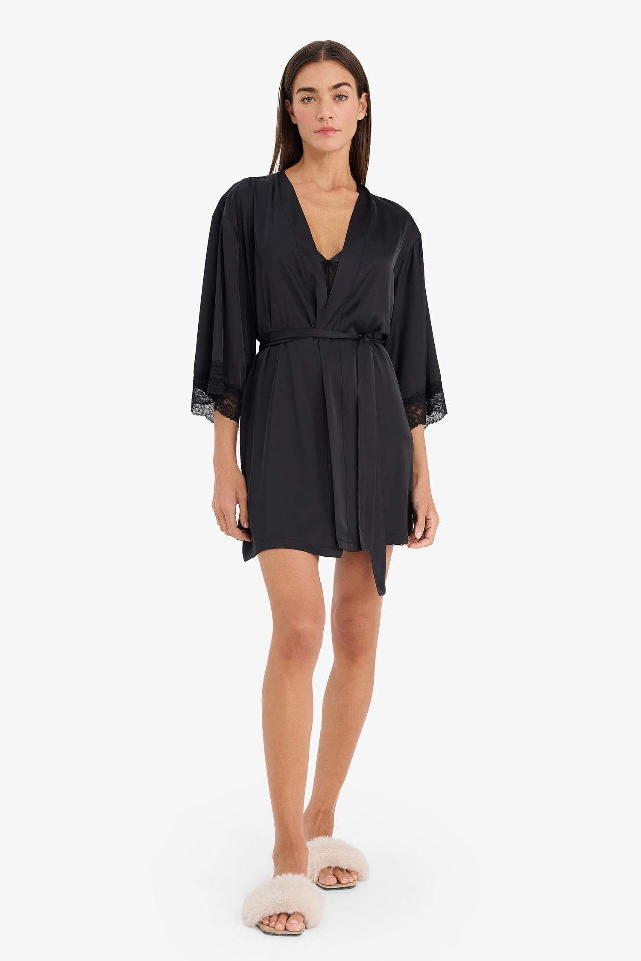 DeFacto Regular Fit Wrap Yaka Saten Yarım Kol Sabahlık