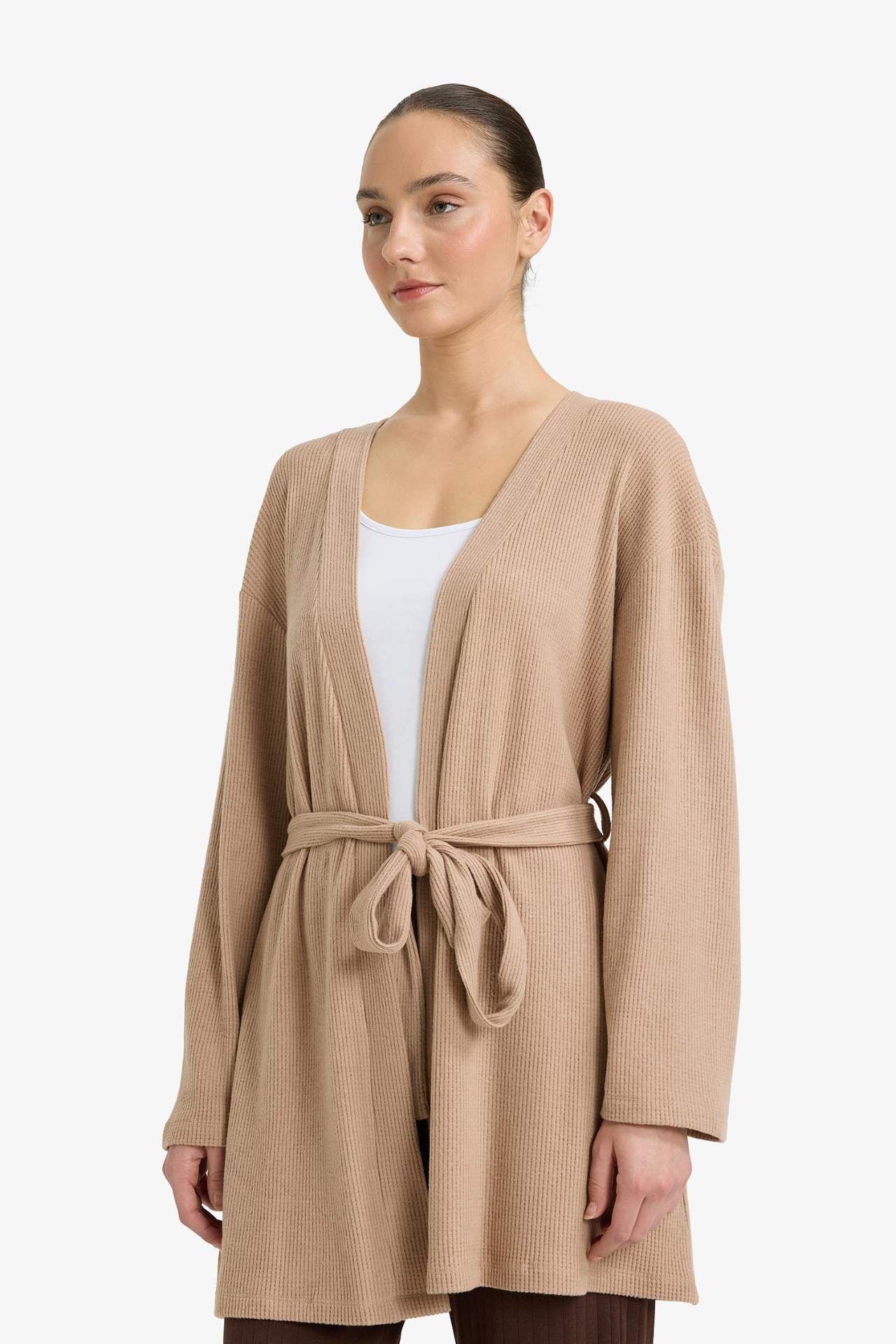 DeFacto Regular Fit Wrap Yaka Welsoft Pelüş Uzun Kollu Sabahlık