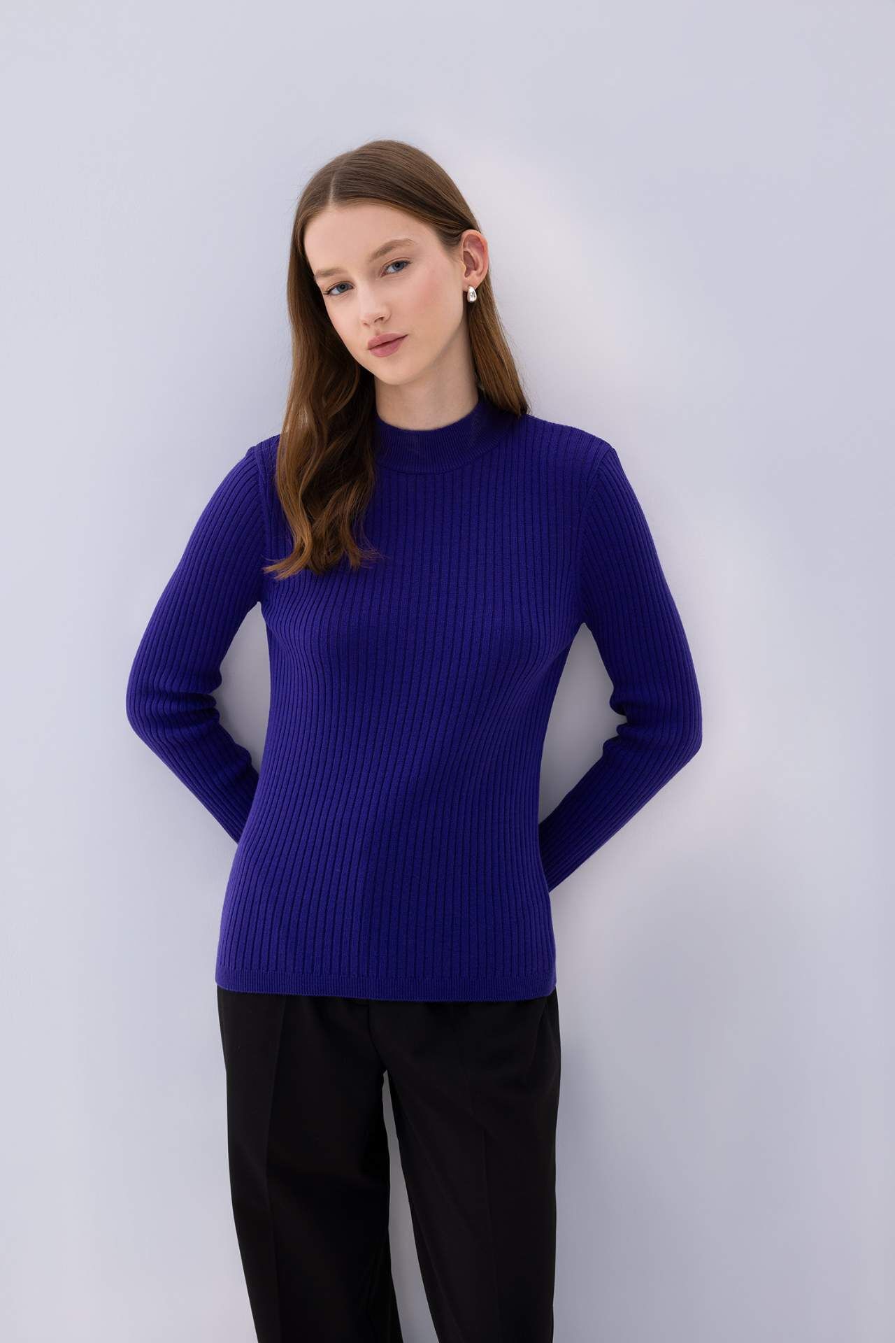 Regular Fit Yarım Balıkçı Yaka Basic Düz Triko Kazak Tunik
