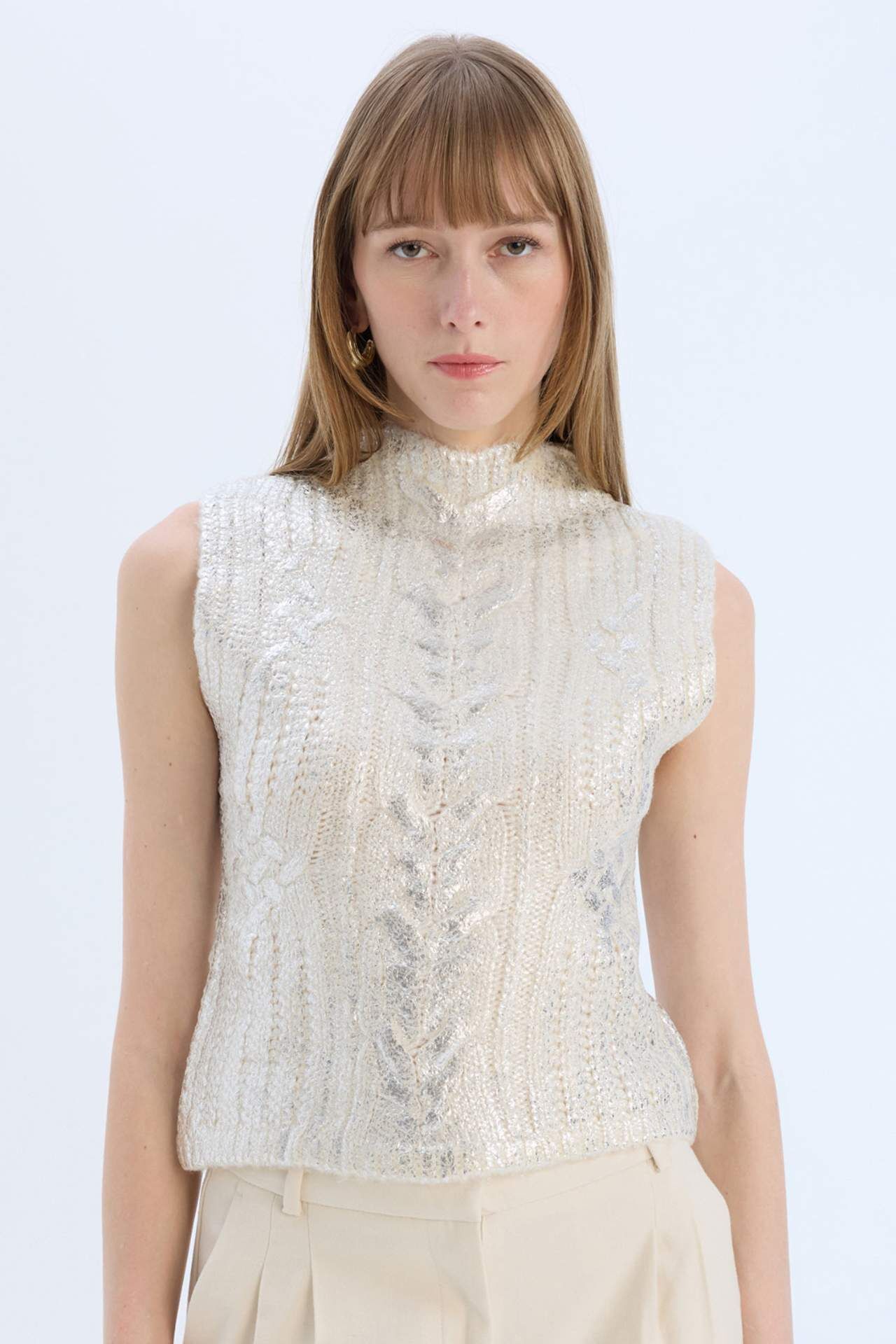 Regular Fit Yarım Balıkçı Yaka Parlak Triko Süveter