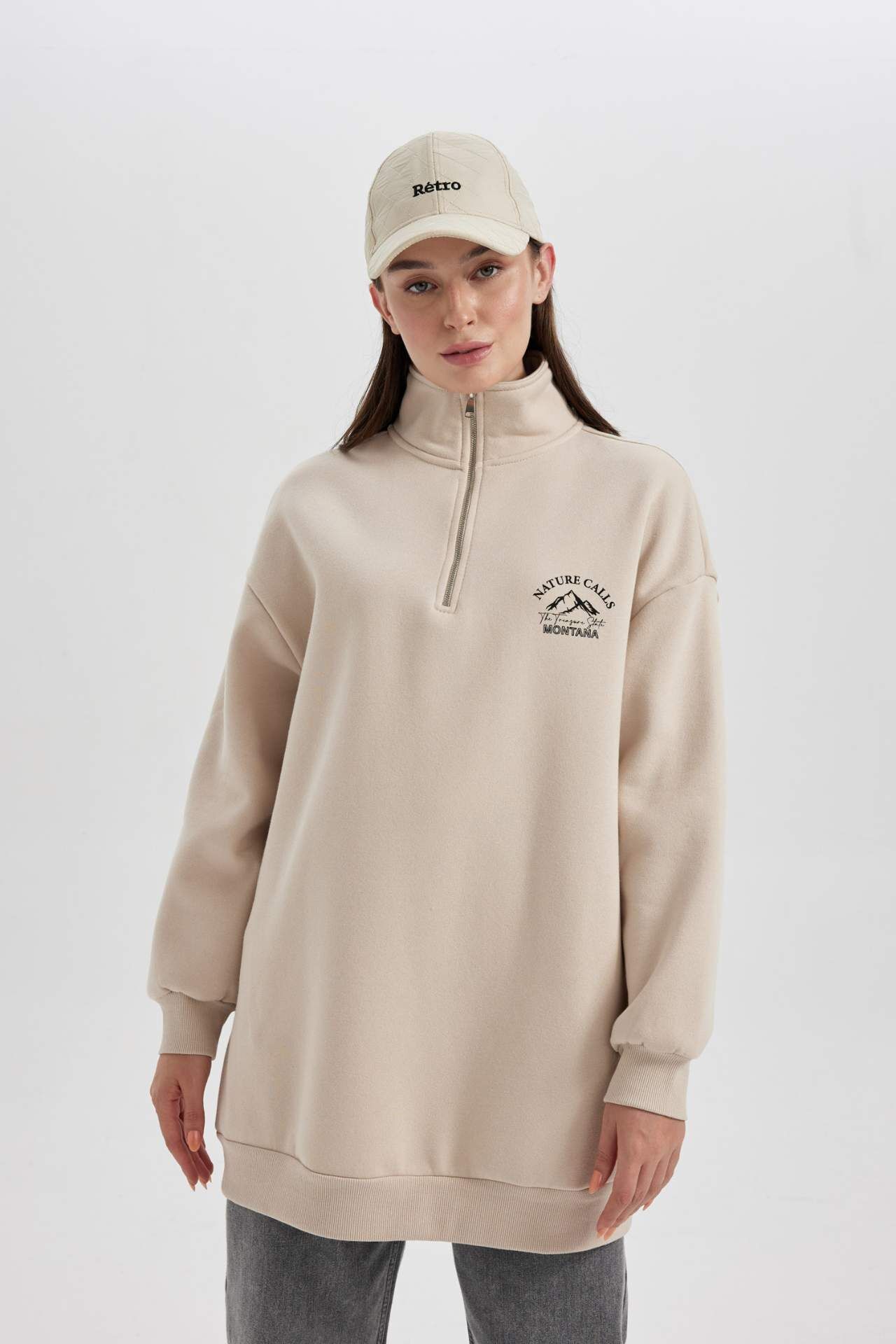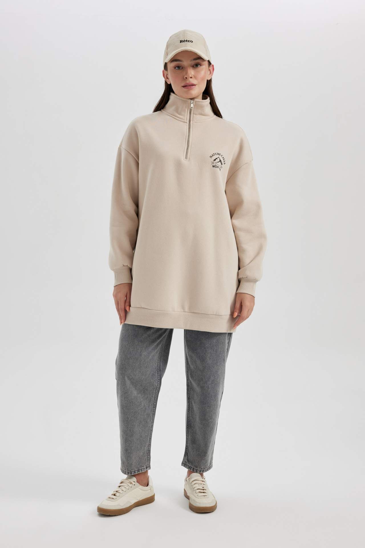 DeFacto Regular Fit Yarım Fermuarlı Dik Yaka Kalın Sweatshirt Tunik