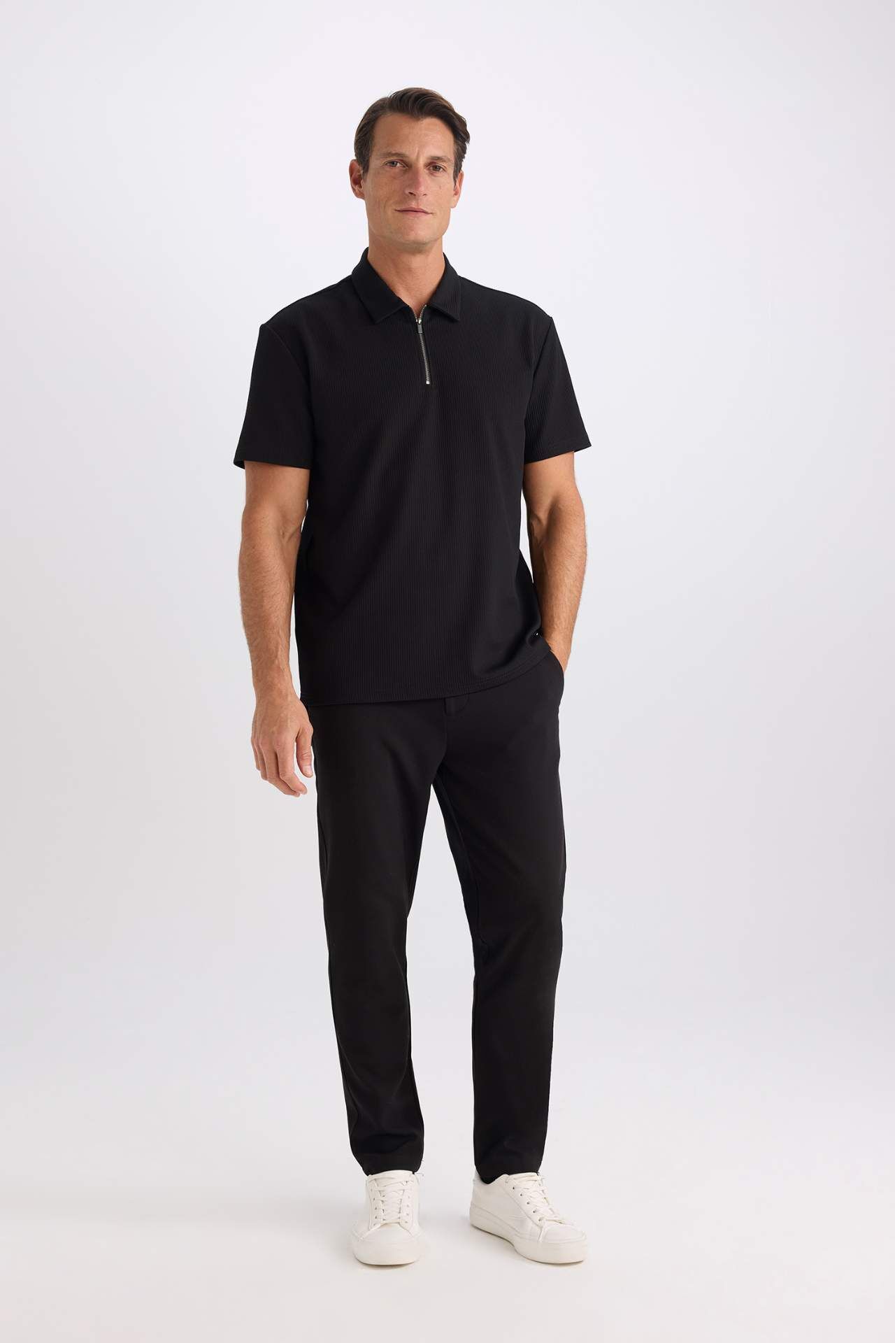 DeFacto Regular Fit Yarım Fermuarlı Kısa Kollu Pilise Polo Tişört B7355AX25SPBK81