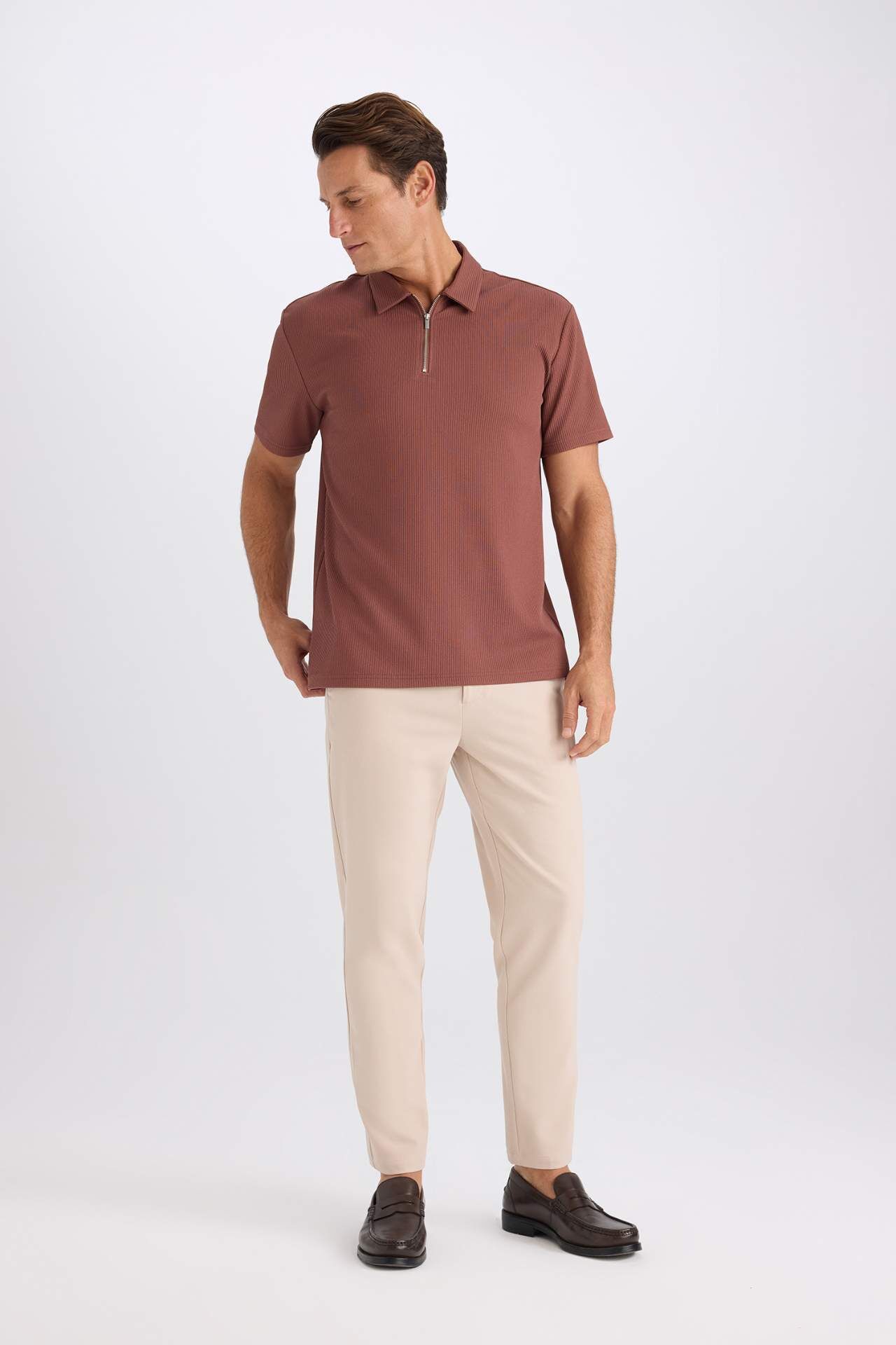 DeFacto Regular Fit Yarım Fermuarlı Kısa Kollu Pilise Polo Tişört B7355AX25SPBN329