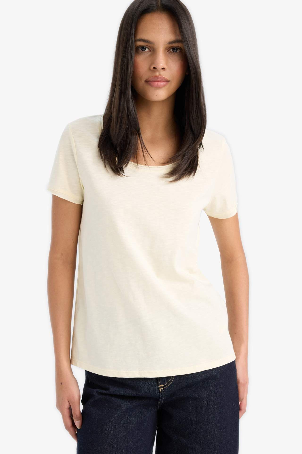 DeFacto Regular Fit Yuvarlak Yaka Basic Düz Kısa Kollu Tişört K1508AZ25SMYL504
